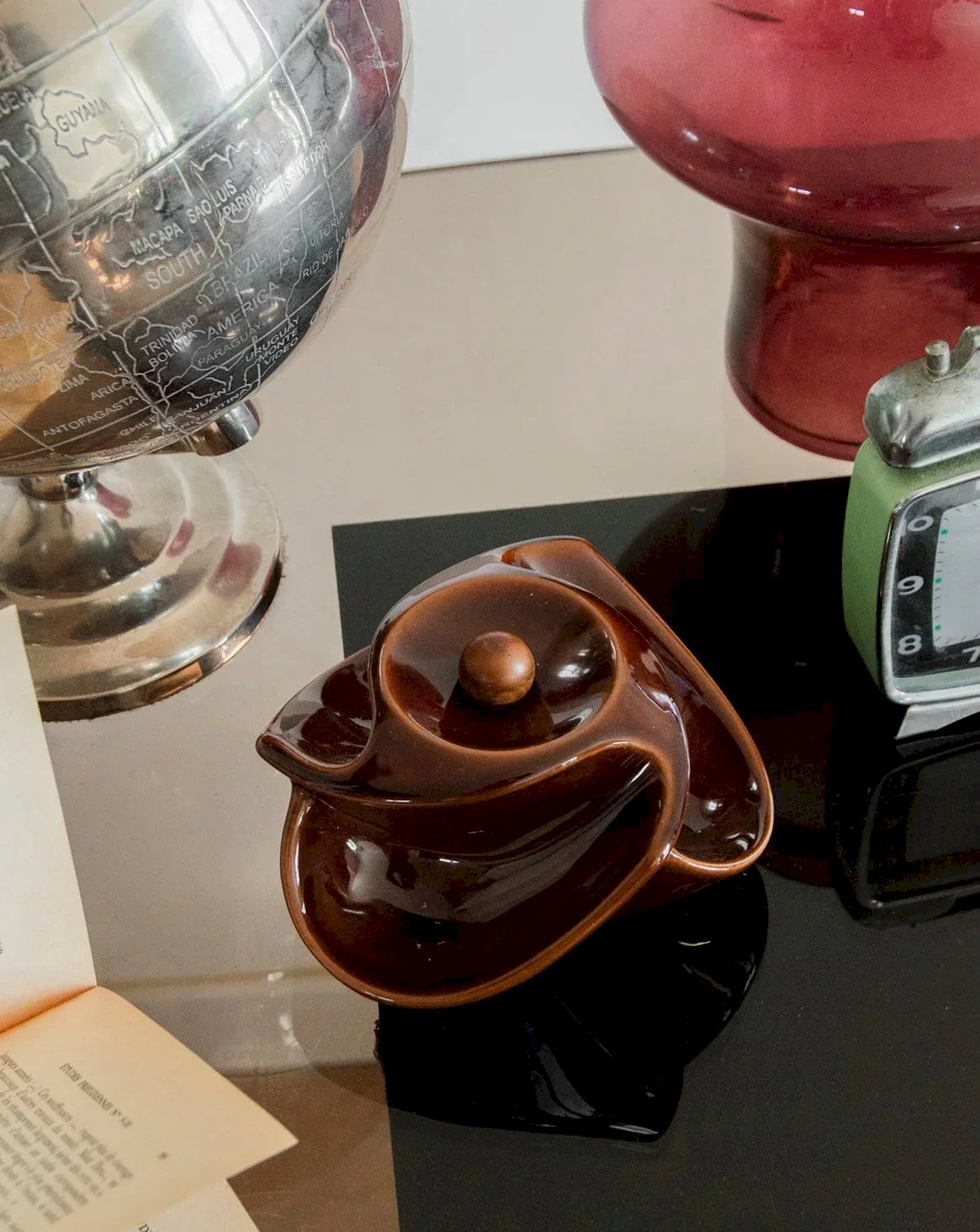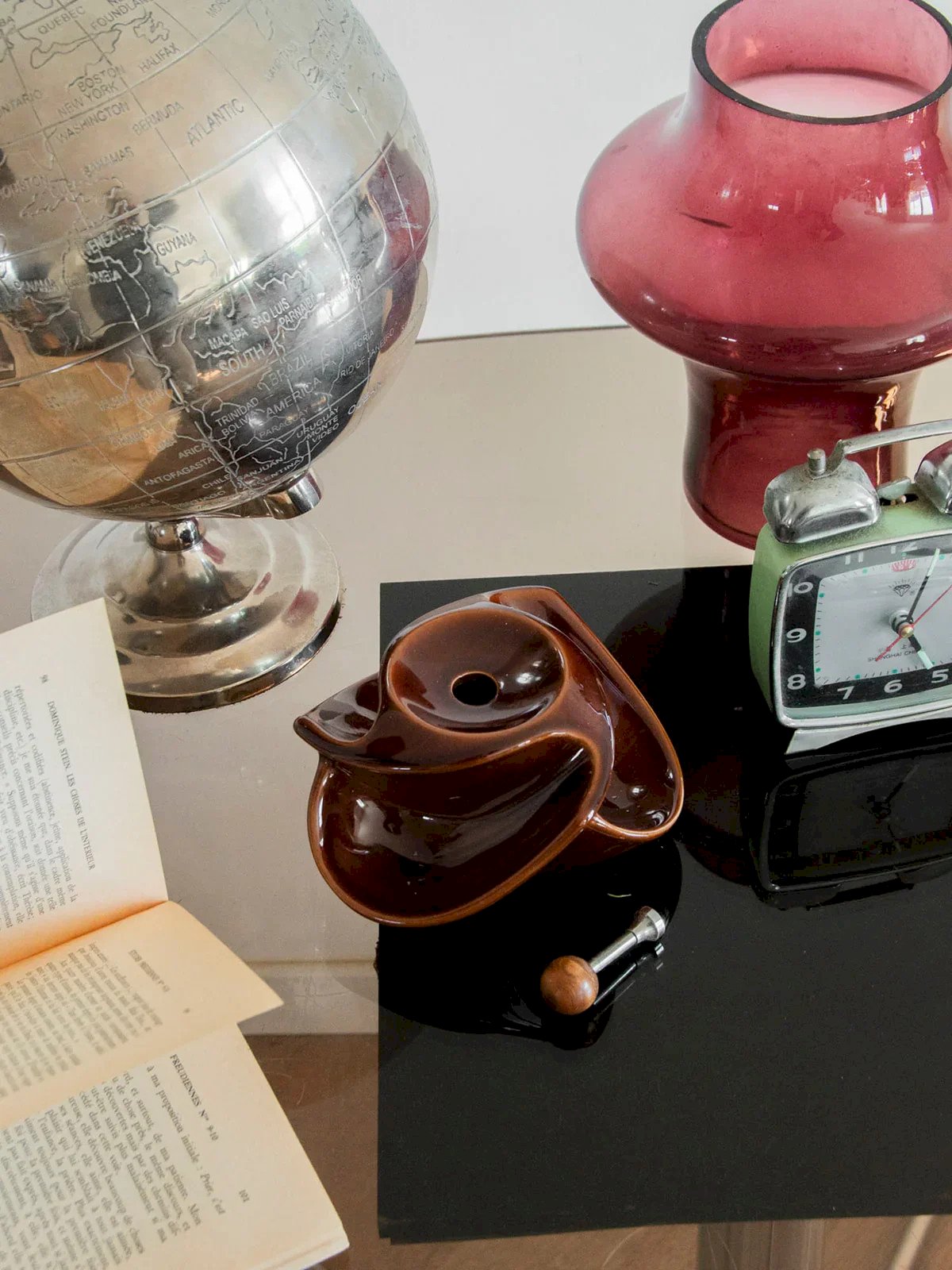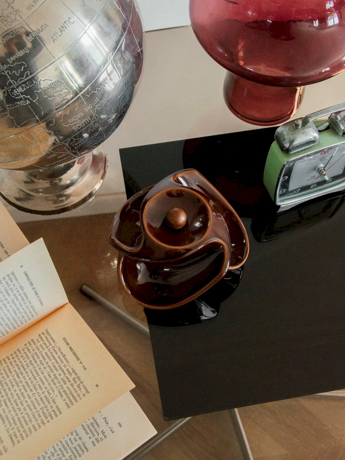 Discover this elegant brown ceramic pipe holder, accompanied by a matching cup for your tobacco. Combining practicality and style, its classic design adds a refined touch to your smoking space while keeping your essential accessories within reach. A must-have for pipe enthusiasts wanting to fully enjoy their moments of relaxation or as a simple vintage decorative element. Height: 9 cm Diameter: 14 cm Condition: Used: Item that has been used. Item showing some signs of superficial wear, fully operational and functioning properly. It may be a demonstration model or an item returned to the store after a short period of use. Any imperfections. Brand: Debongout Type: Thrifted product Material: Ceramics Style: Contemporary