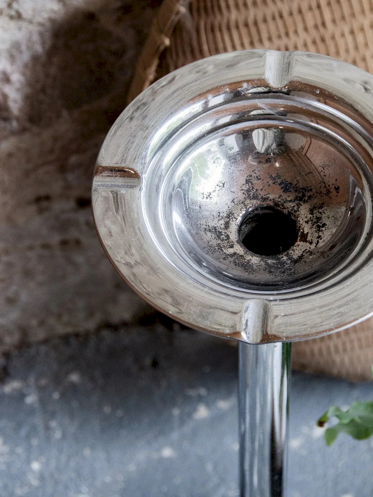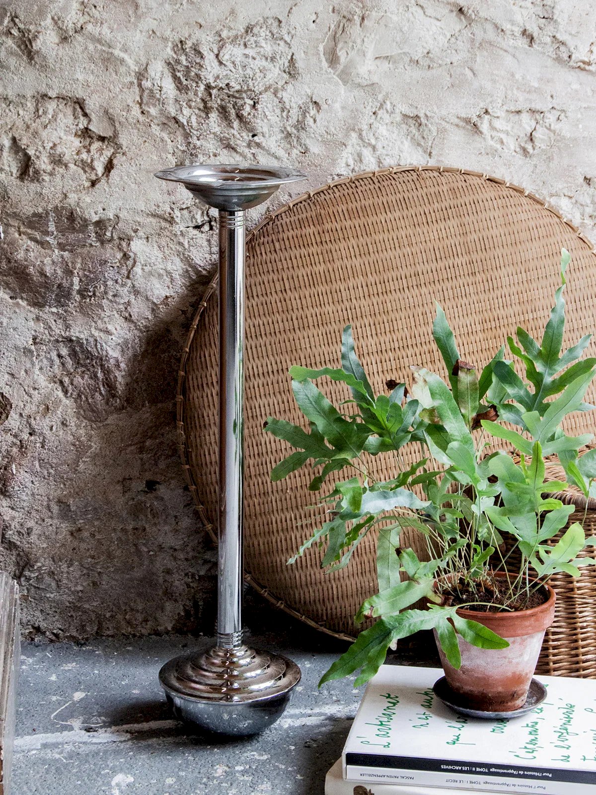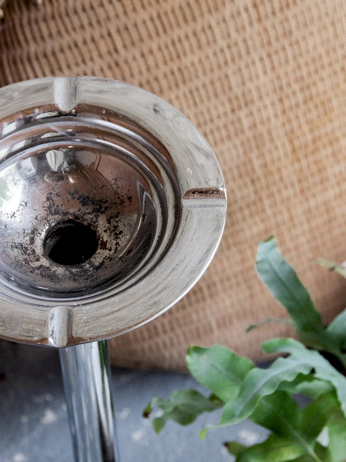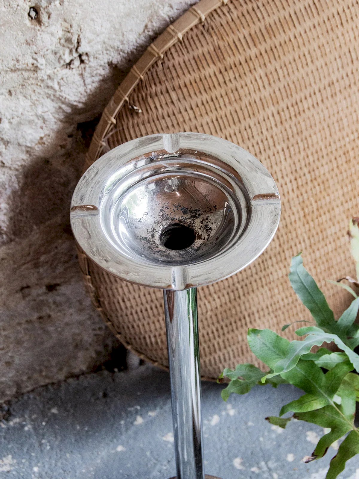 Discover this metal pedestal ashtray, an elegant and practical accessory for your office or outdoor space. With its bobblehead design, it remains stable and upright even in light winds, preventing the inconveniences associated with traditional ashtrays. Made from high-quality metal, it combines durability and aesthetics, adding a modern touch to your decor while keeping your environment clean. Ideal for daily use, this ashtray blends functionality and style. Height: 64 cm Diameter: 17 cm Condition: Used: Item has been used. Item shows some superficial wear marks, fully operational and functioning correctly. It may be a display model or an item returned to the store after a short period of use. Possible imperfections. Brand: Debongout Type: Vintage product Material: Metal Style: Contemporary