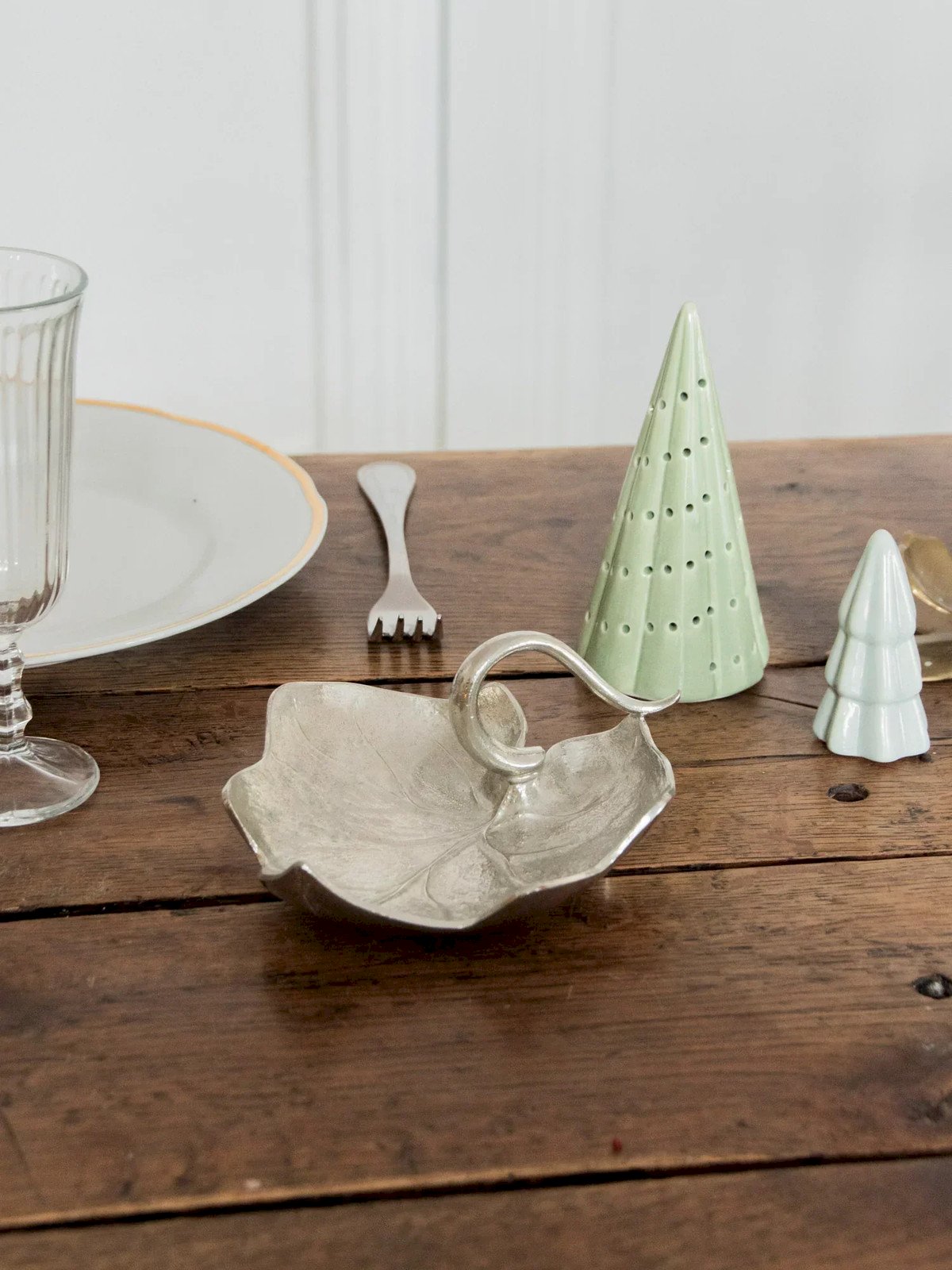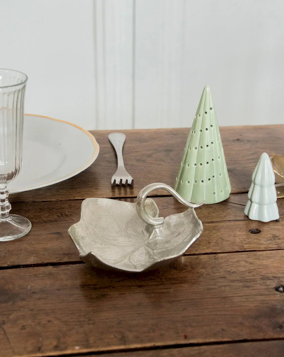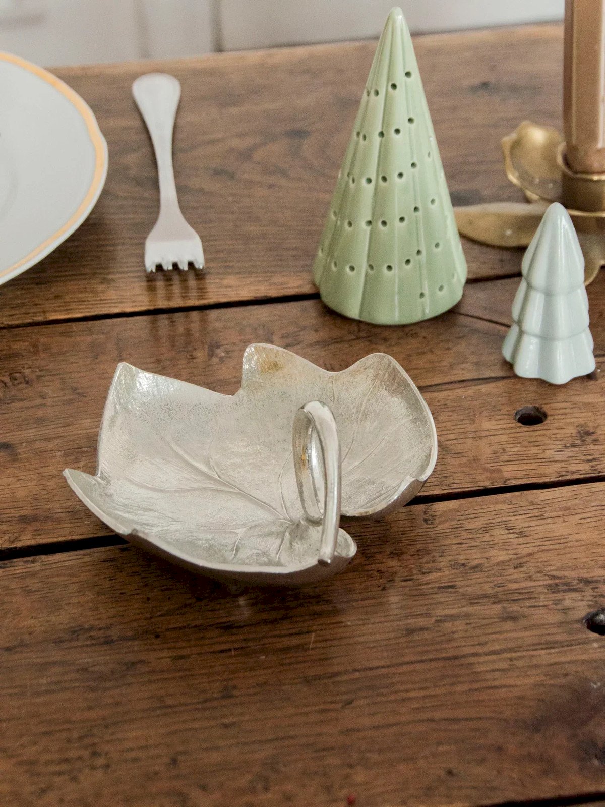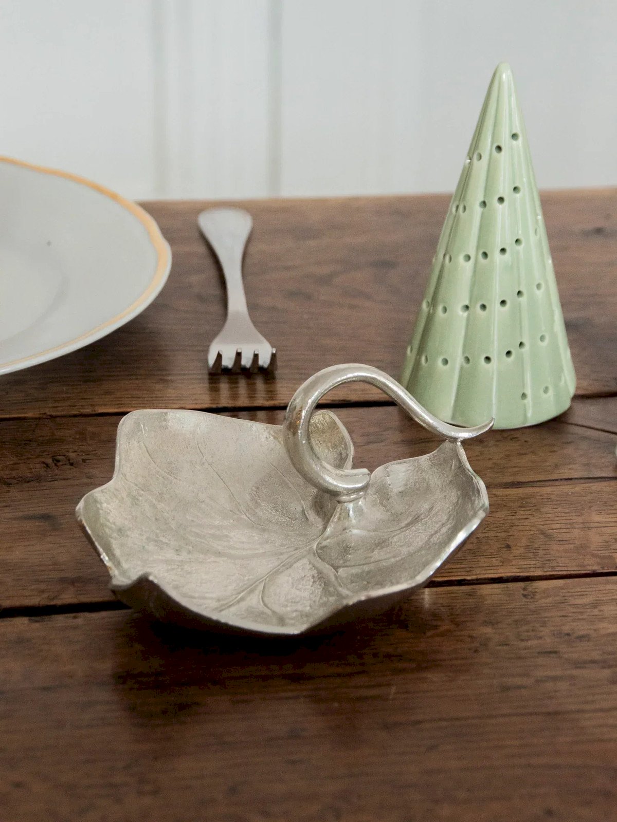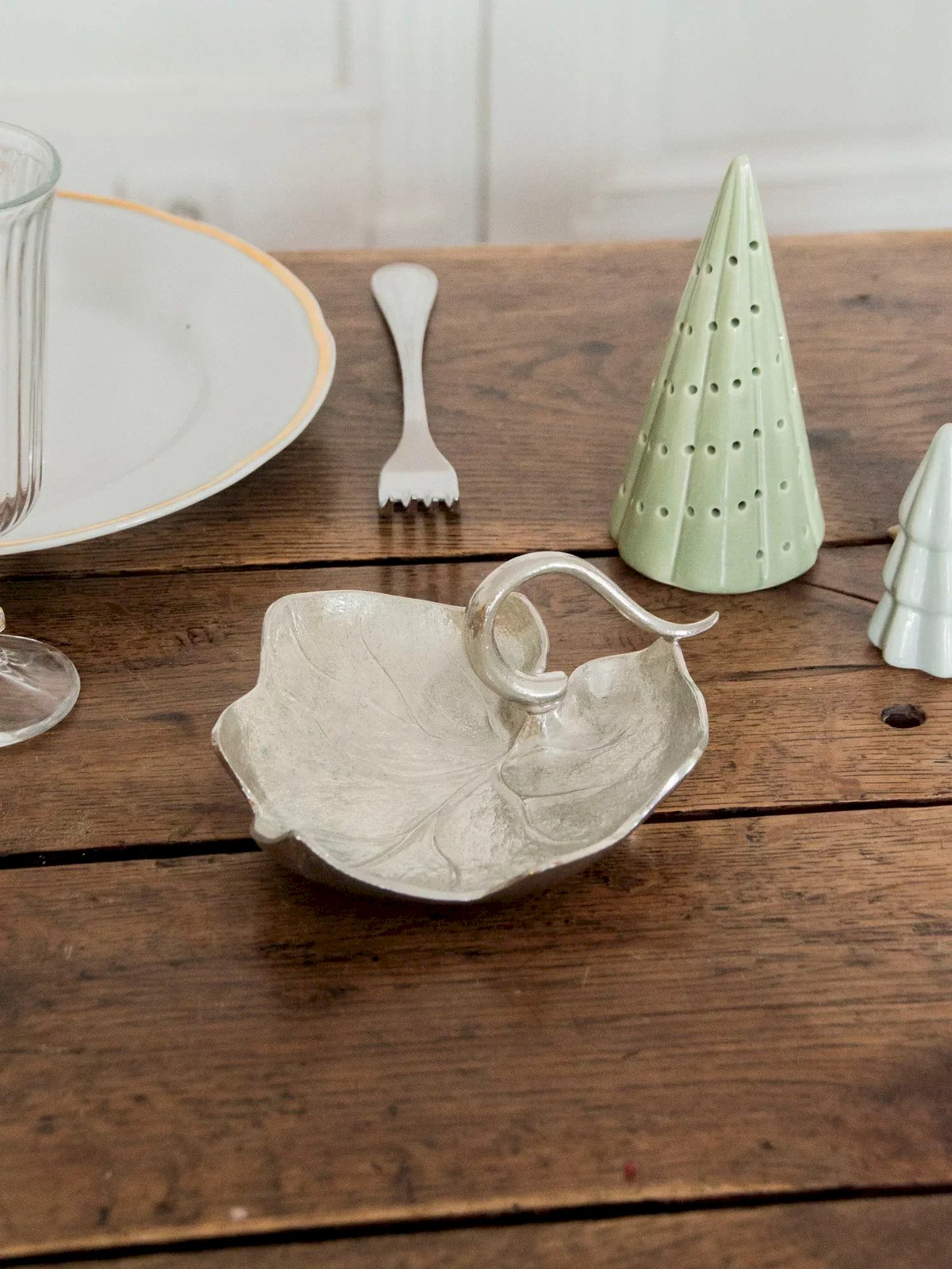Add this metal leaf-shaped catchall to your entryway or living room: it gently and stylishly collects keys, coins, and small jewelry. Its metallic material, crafted in fine curves, evokes a light presence that easily fits on a console, shelf, or coffee table. Designed to organize everyday essentials without weighing down the space, it offers a discreet and decorative storage point. A useful object that adds a natural and graphic touch to your interior. Length: 13 cm Width: 12 cm Height: 3 cm Condition: Used: An item that has been used. The item shows some signs of superficial wear... Used: An item that has been used. The item shows some signs of superficial wear, is fully operational, and functions correctly. It may be a display model or an item returned to the store after a short period of use. Any potential imperfections. Brand: Debongout Type: Thrifted product Material: Metal Style: Contemporary