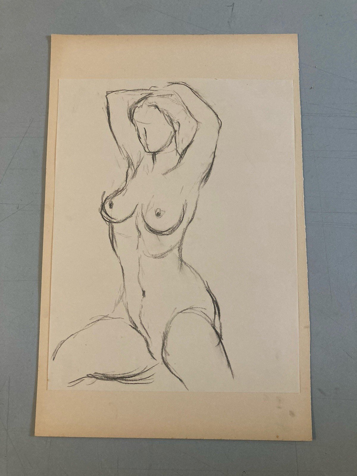 Pencil Drawing 1960 Nude Woman Erotic To Be Identified Old Workshop Art