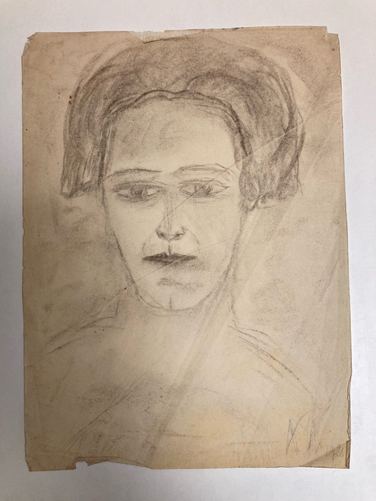 Good general condition, see photo Drawing, pencil on paper signed at the bottom right by the monogram K. K. This work comes from a part of the studio estate that was in a box of Drawings, see attached photo of others, works are available in my shop of 1930s abstractions and Drawings from the Art Brut period after the 1950s ⸻ Biography of Jeanne Kosnick-Kloss (1892 – after 1966) Jeanne Kosnick-Kloss, born in 1892, is a Franco-German artist whose work spans several major currents of modern art: abstraction, engaged art, and a more free expression close to Art Brut in the last decades of her life. She is also known for her artistic and personal collaboration with Otto Freundlich, a major figure in spiritual abstraction. ⸻ ? Training and early years Few details are known about her initial training, but she was active in Paris as early as the 1920s. She frequented avant-garde circles, where she met Otto Freundlich, a sculptor and theorist of abstraction of German origin, with whom she shared her life and studio. She became an essential collaborator of Freundlich, participating in his work, sharing his ideas on the universality of art and the spirituality of forms. ⸻ ? Abstract period (1920s-1930s) In the 1930s, Kosnick-Kloss developed a rhythmic geometric abstraction influenced by constructivism, orphism (from Robert and Sonia Delaunay), and theories on color. She produced gouaches and drawings where the circle and spiral dominate, evoking cosmic harmony. She was in contact with Sonia Delaunay, with whom she shared a colorist sensitivity and an interest in integrating art into daily life (clothing, textiles, objects). Although lesser-known, Kosnick-Kloss participated in this female ecosystem of abstraction, often eclipsed by official history. ⸻ ? Political engagement and exile With the rise of Nazism, Kosnick-Kloss and Freundlich exiled themselves to the south of France. Otto Freundlich, of Jewish origin and considered by the Nazis to be a representative of "degenerate art," was arrested in 1943 and deported to Majdanek, where he was murdered. Jeanne survived the war and preserved the legacy of their joint work. Her post-war work, freer and more intuitive, seems marked by this trauma. ⸻ ? Art Brut / free expression period (1950s-1960s) In the 1950s-60s, Jeanne Kosnick-Kloss adopted a more spontaneous plastic writing, marked by irregular forms, primitive figures, and personal symbols. This trend aligns her with Art Brut or a form of naïve expressionism, following in the footsteps of Dubuffet. She pursued a discreet but coherent body of work, affirming a deeply personal aesthetic, on the margins of dominant currents. ⸻ Legacy and recognition Jeanne Kosnick-Kloss remains today an unknown but significant figure of European abstraction. Her work is inseparable from that of Otto Freundlich, of whom she was the artistic partner and guardian of his memory after the war. She continues to be rediscovered through exhibitions devoted to Freundlich or to female abstraction. Recommended products Provided by Type:Gouache Style:1926 Genre:Art brut, Outsider art Features:On Paper Theme:Character Country of origin:France