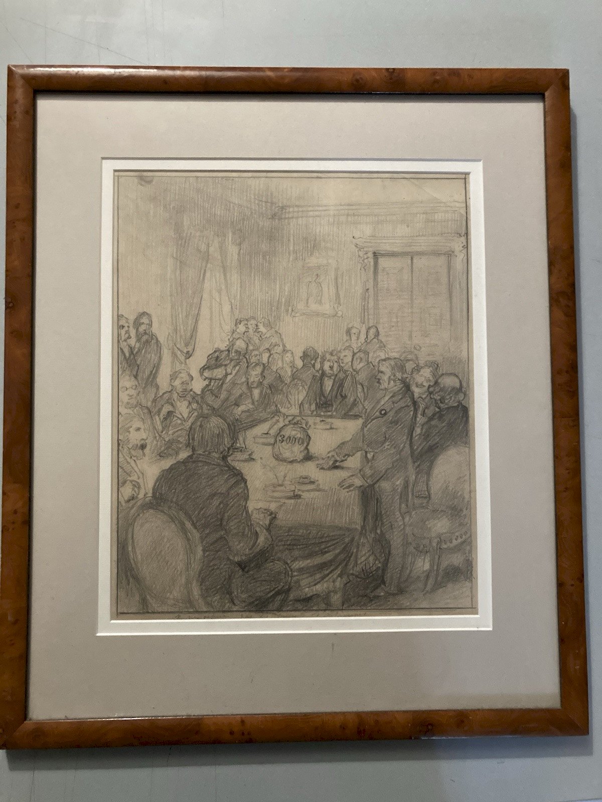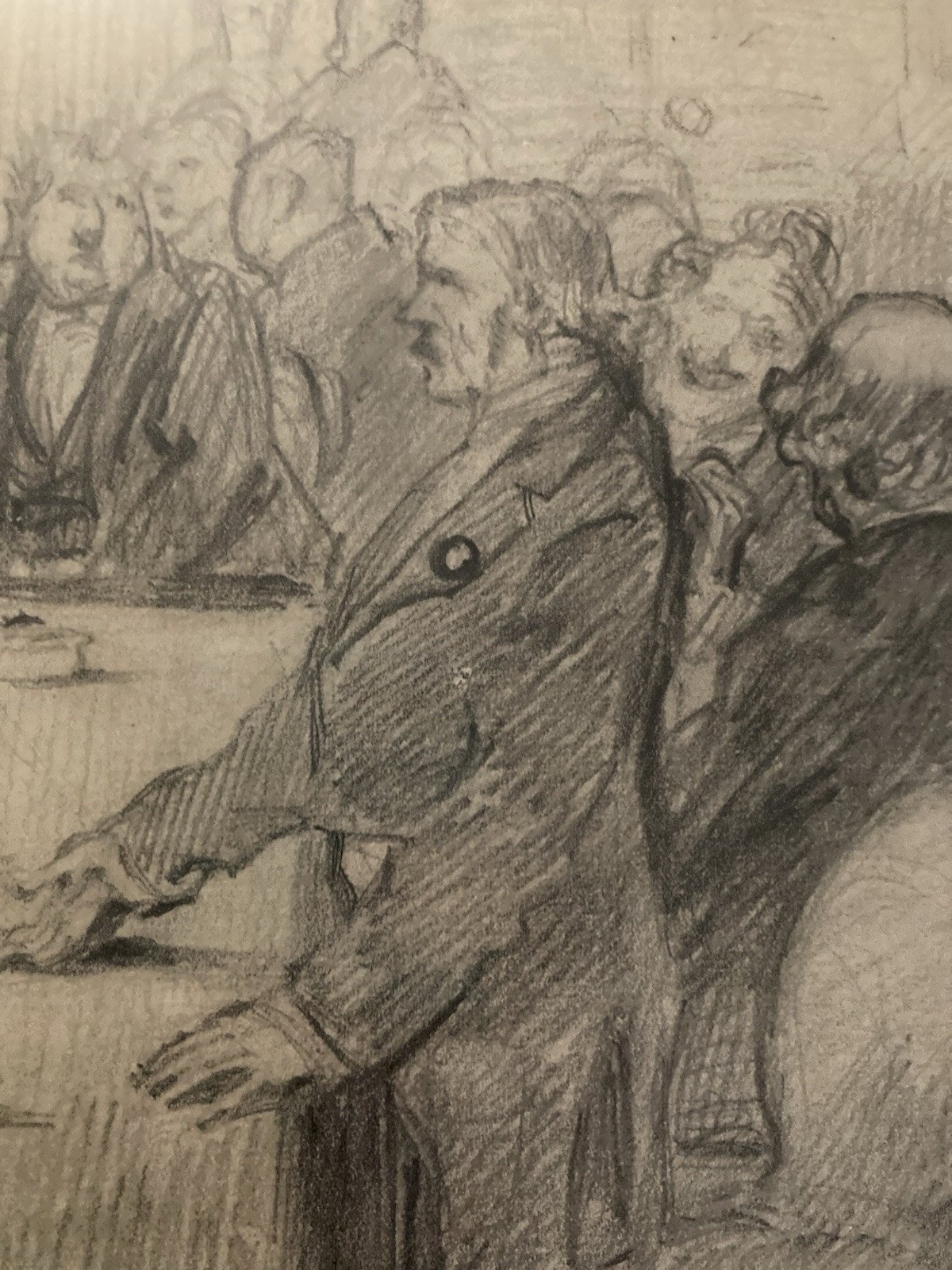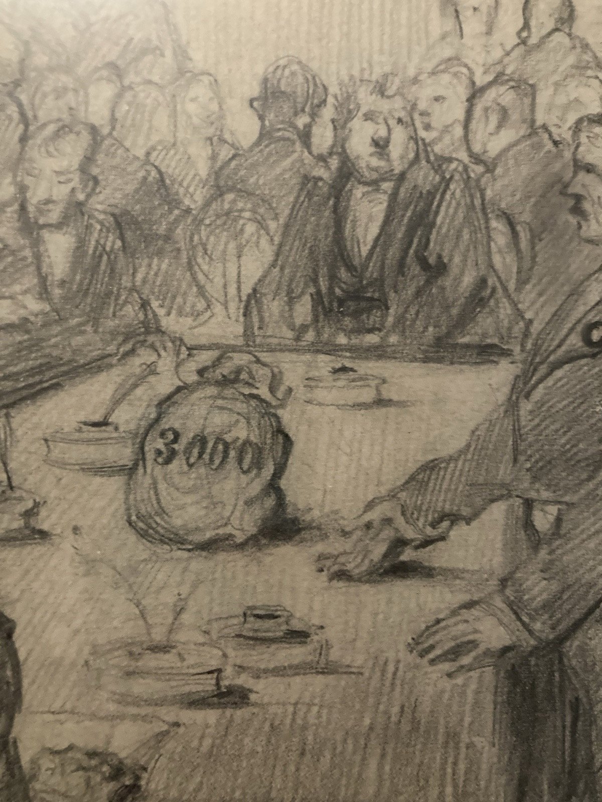 Pencil Drawing on Paper Meeting Banker to Identify Bank