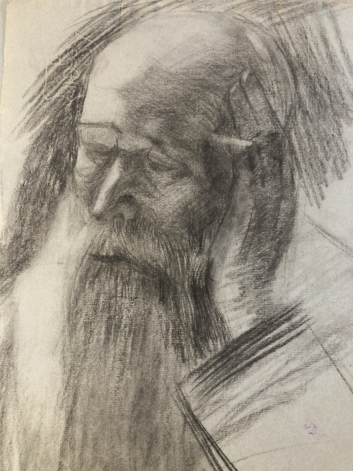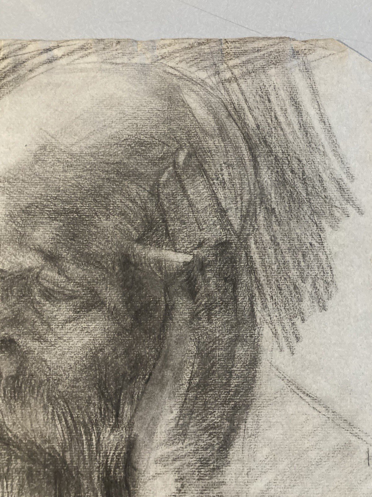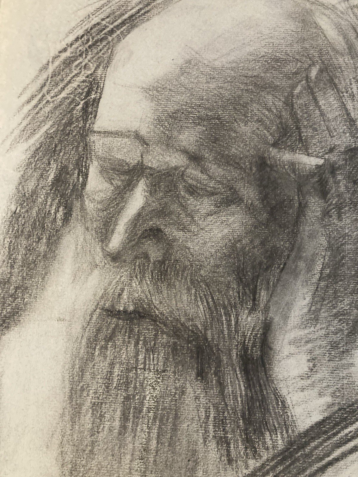 Pencil Drawing Portrait Beard Man Bust To Identify Old 1850 19th Century Art