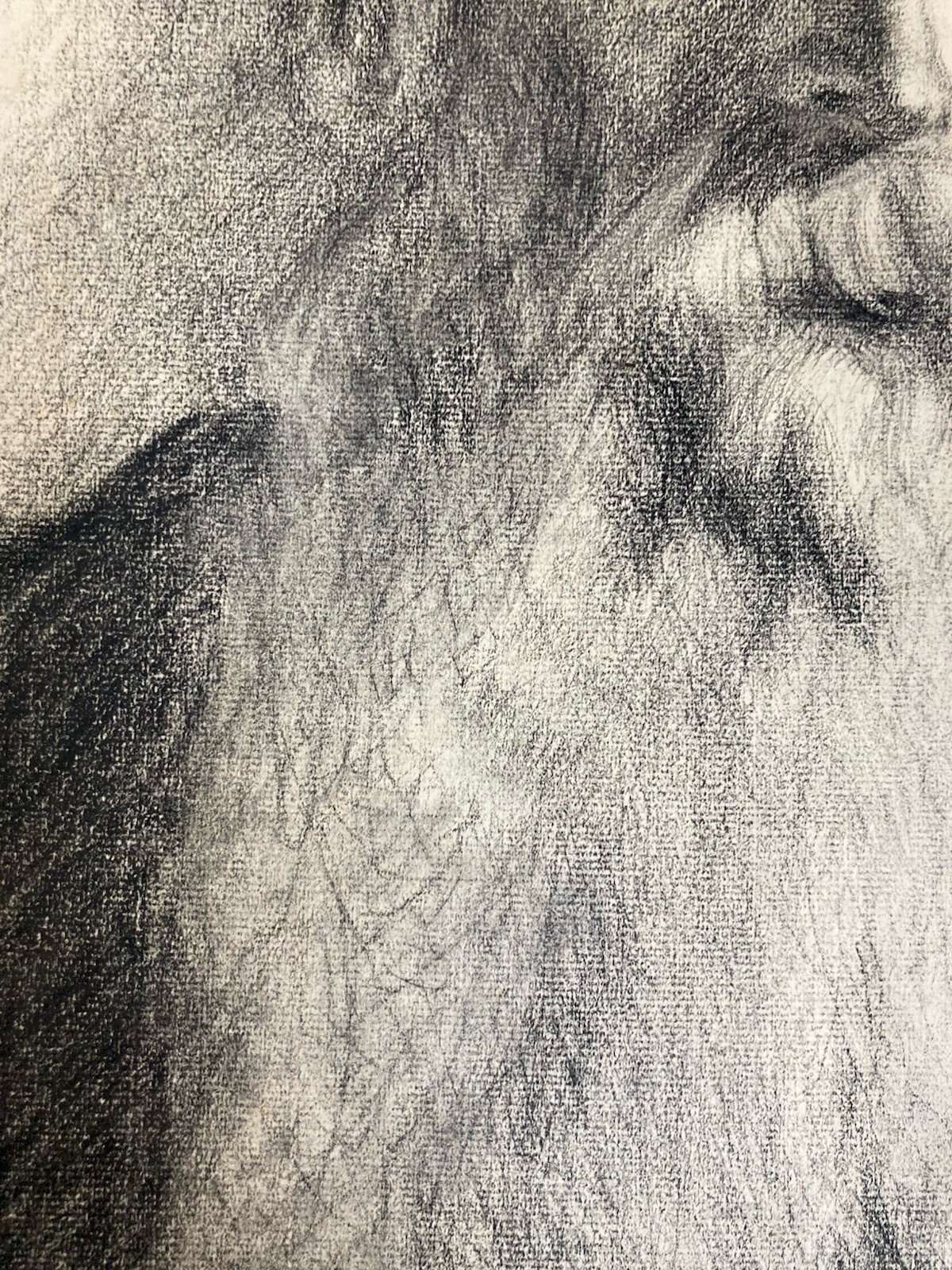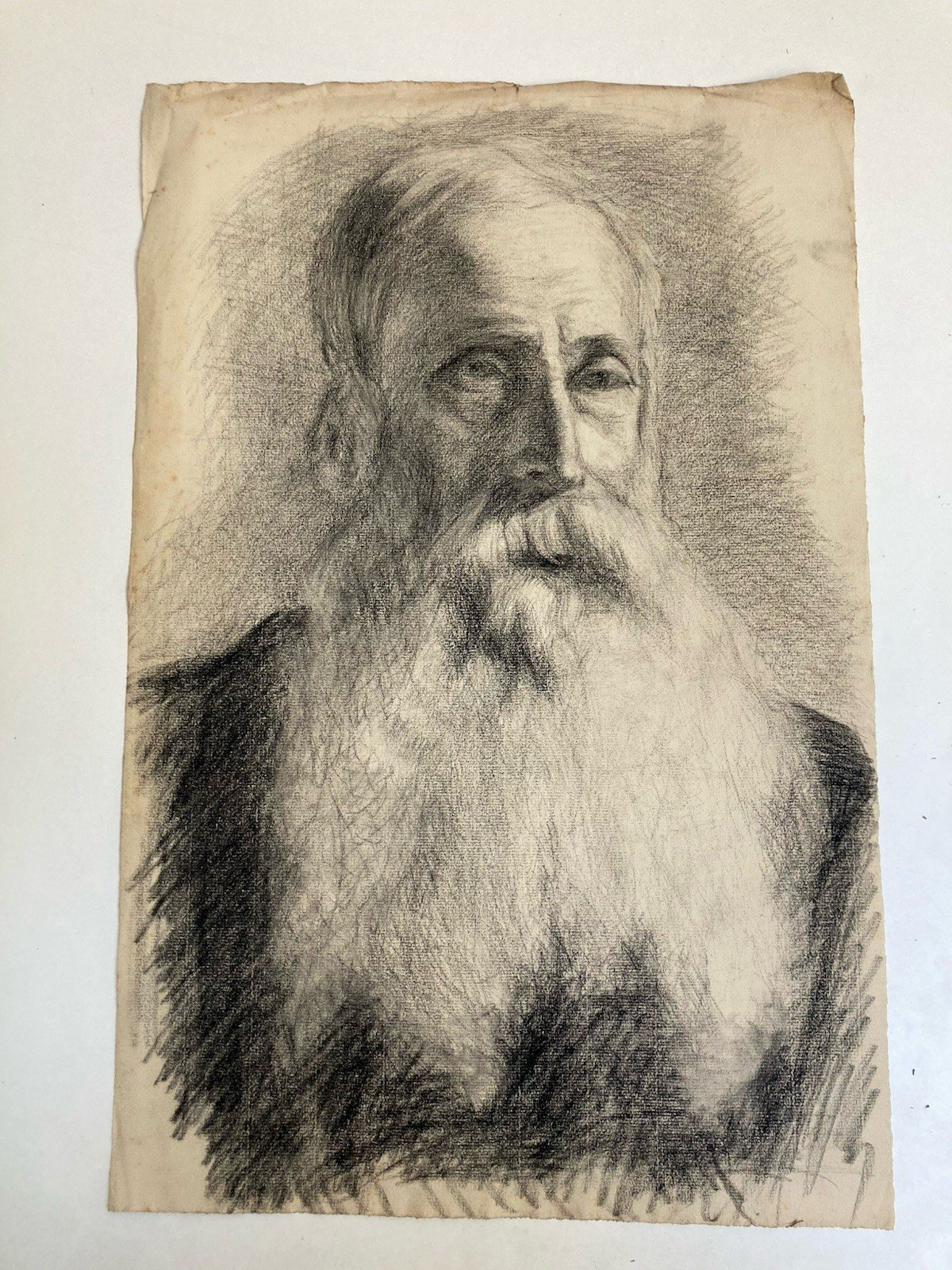 Pencil Drawing Portrait Beard Man Bust To Identify Old Art 1850 19th Century