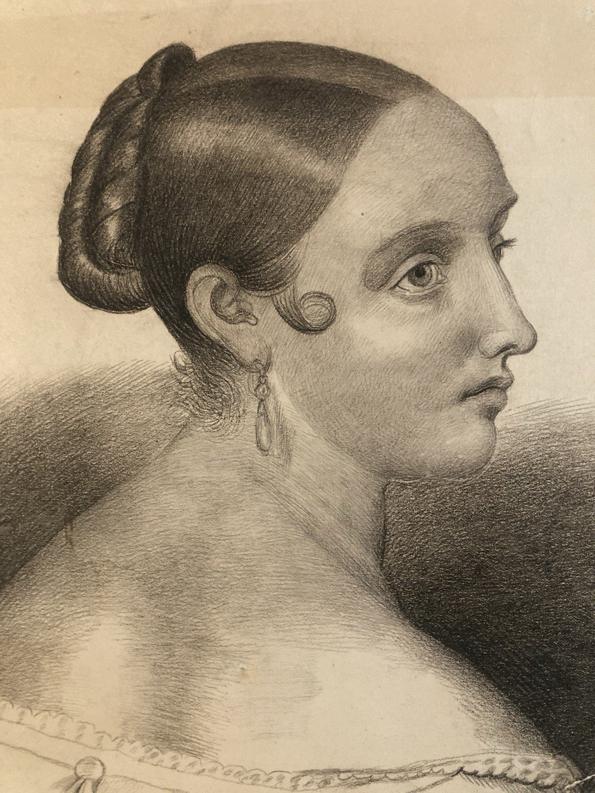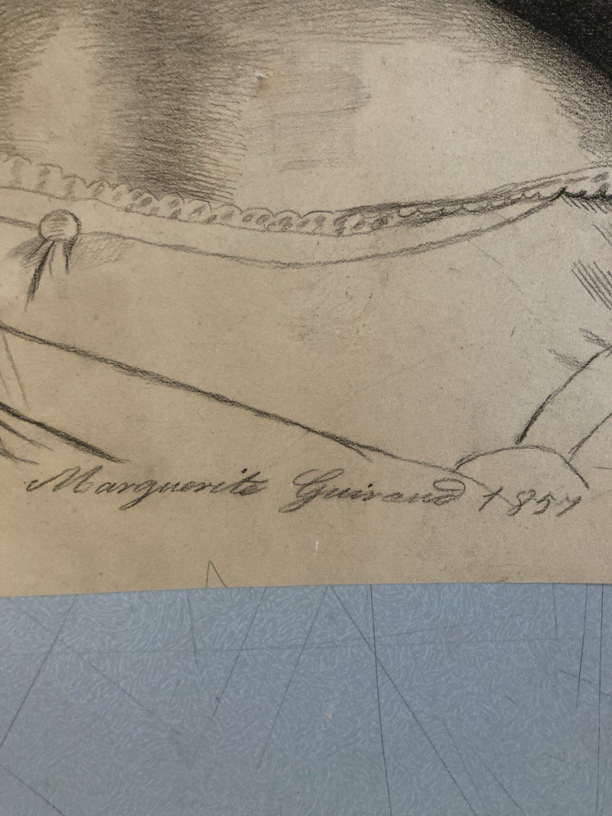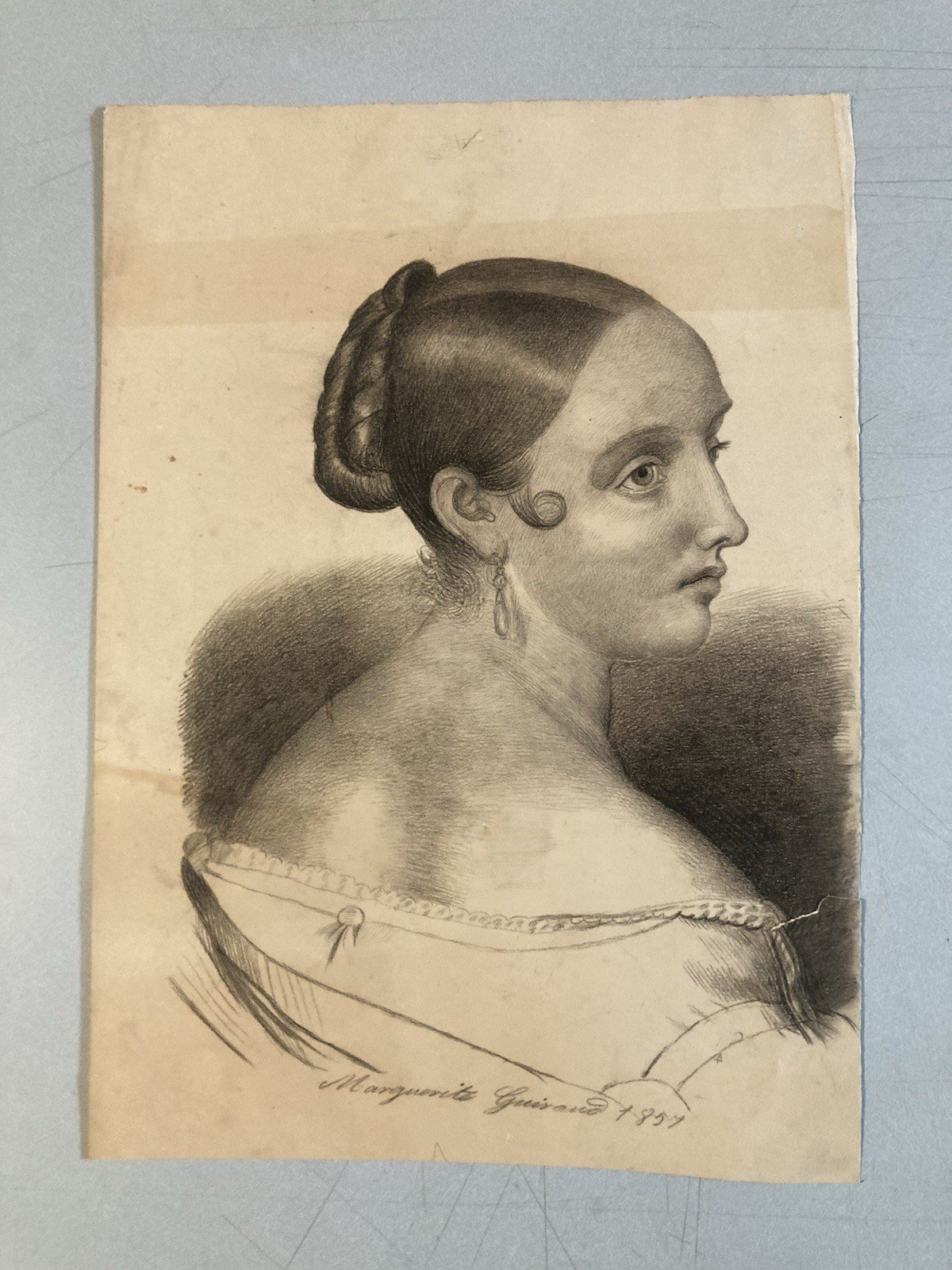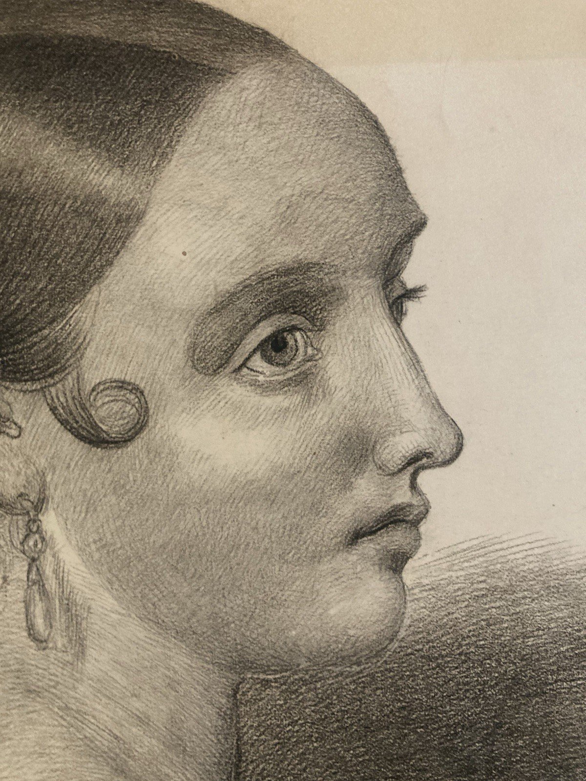 Please note a tear at the bottom right, see photo Type: Pencil Artistic movement: French School Genre: Classicism Features: Signed, On Paper Theme: Portrait, Self-portrait