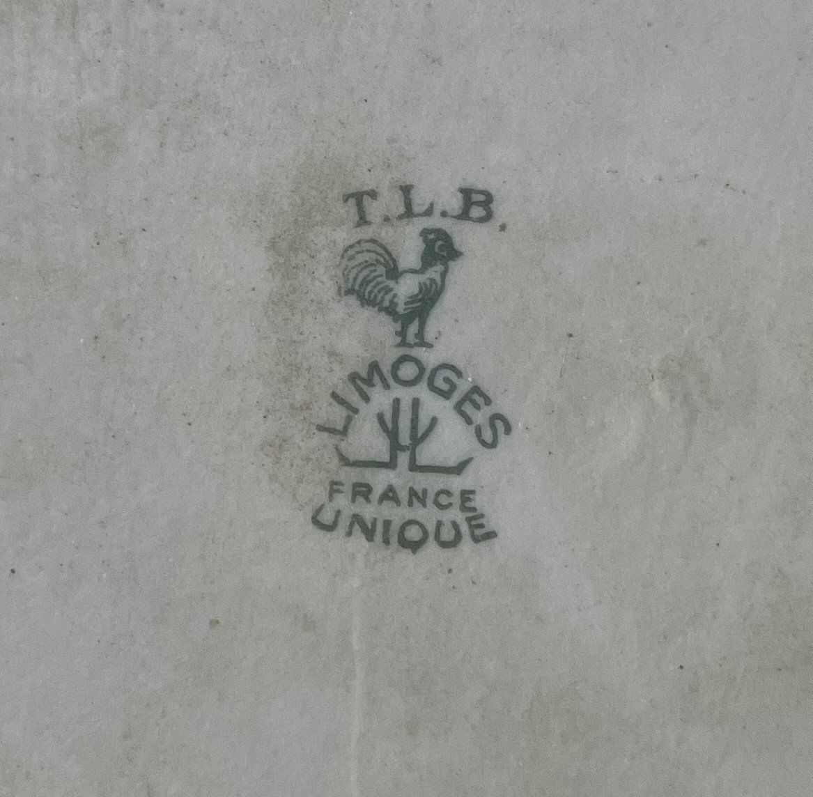 Porcelain pie dish cake from Limoges, France. Unique printed floral decoration signed Raflin, with highlights. Diameter 30.5 cm, generally in good condition - small signs of use near the central pattern. Shipping via MONDIALRELAY.