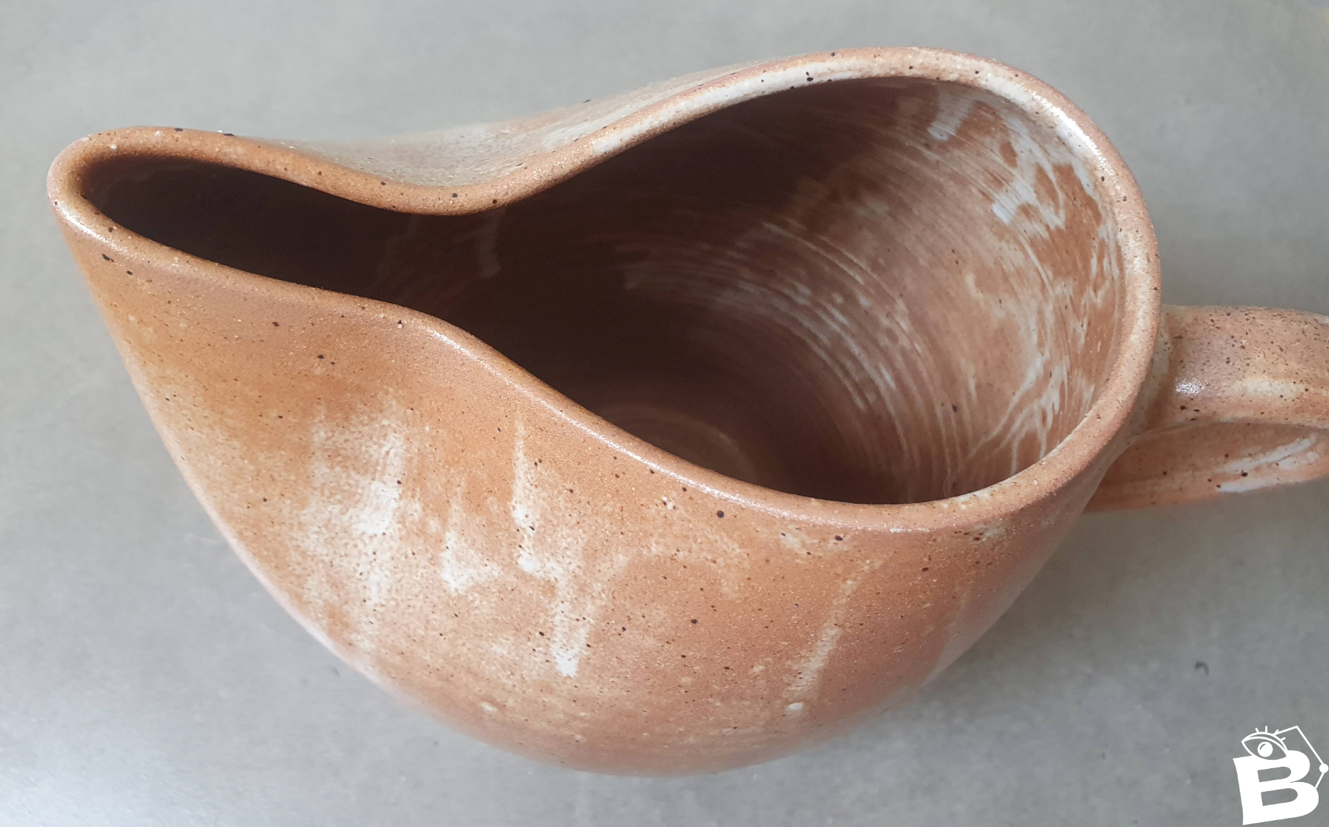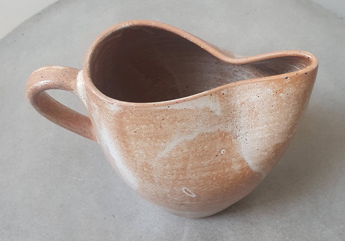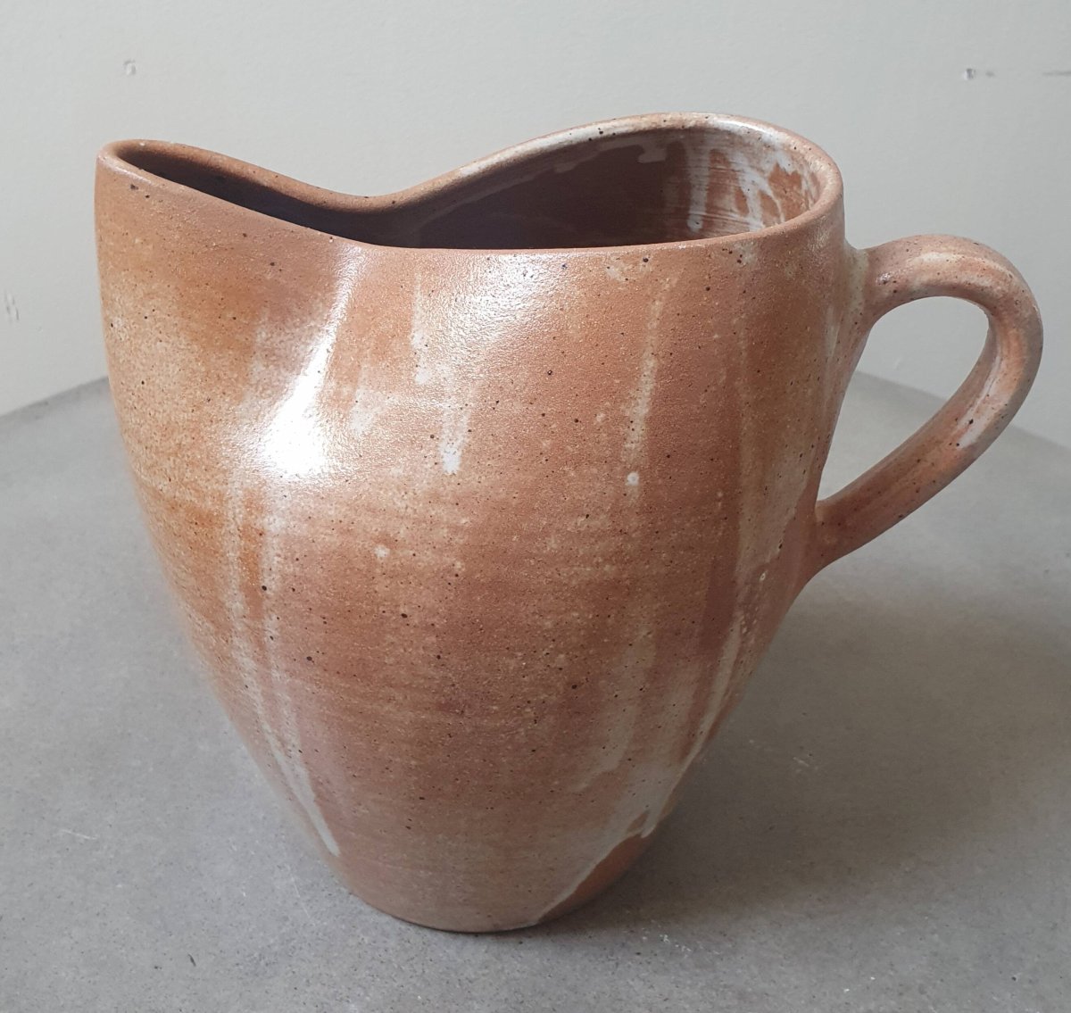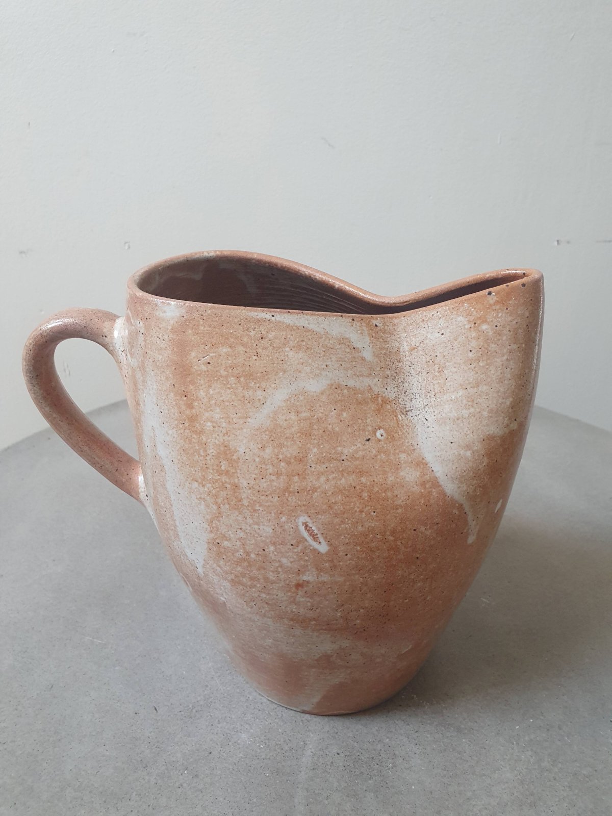 Jug, natural speckled stoneware vase, in perfect condition. L: 22 W: 8 H: 20