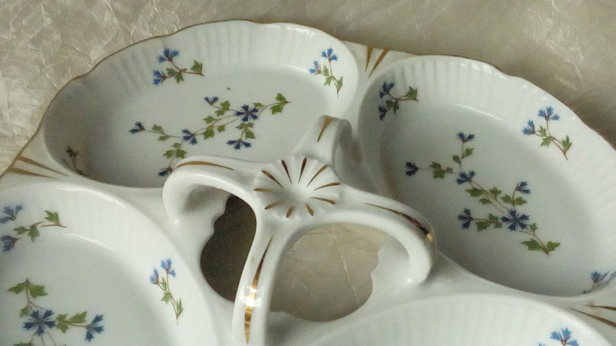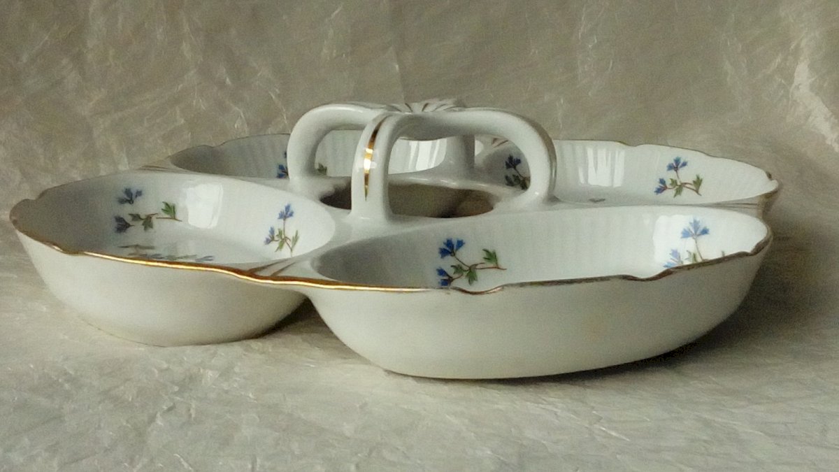 VERY BEAUTIFUL MANDIANT DISH IN PORCELAIN DISH WITH 4 COMPARTMENTS PORCELAIN FIRE FOECY LOUIS LOURIOUX DECOR WITH BARBEAUX DIAMETER 28 cm HEIGHT 6 cm IN GOOD CONDITION Country of origin: France
