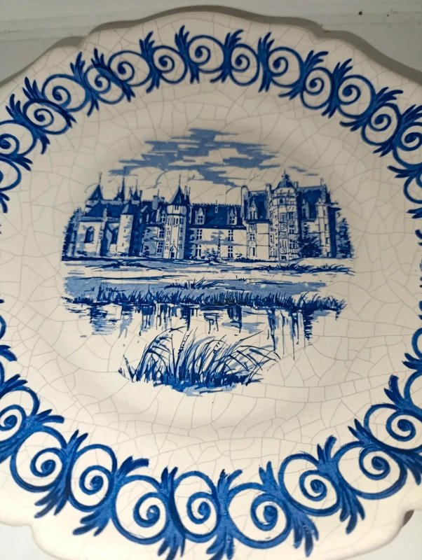 plate representing the Meillant castle in good condition Blue