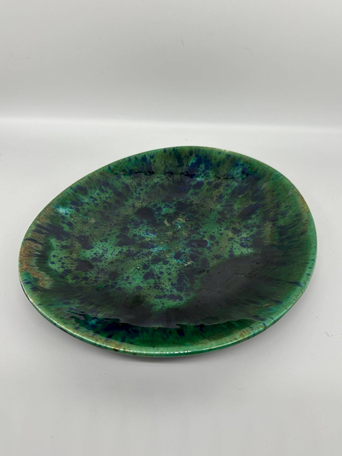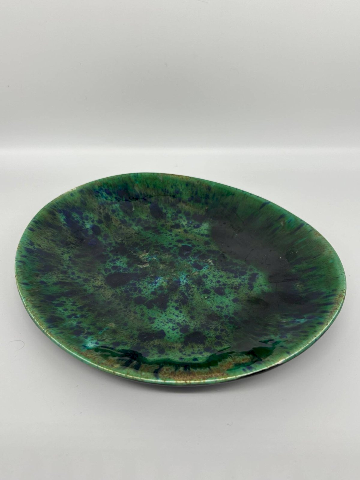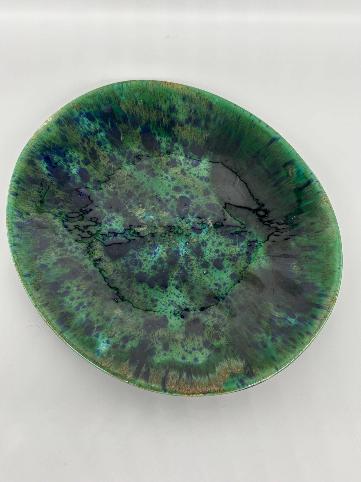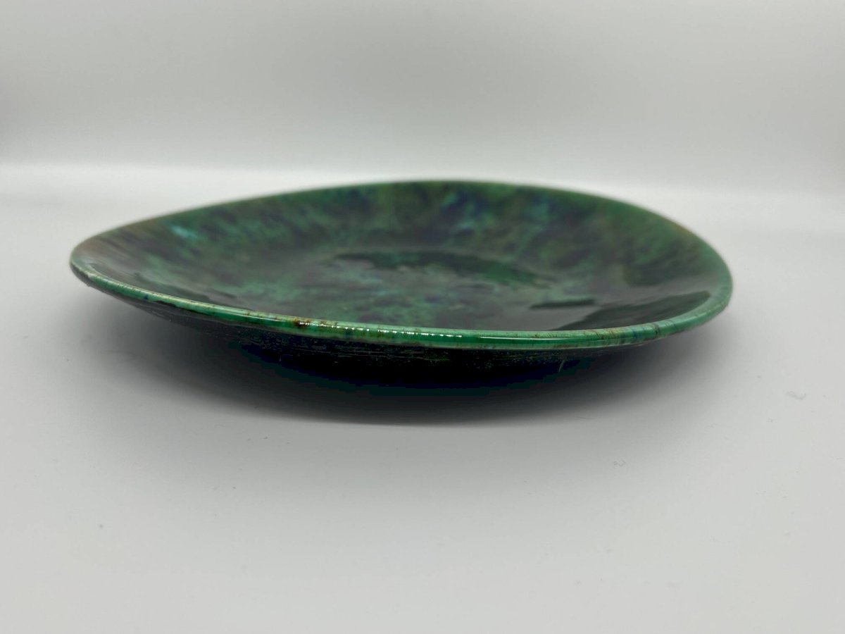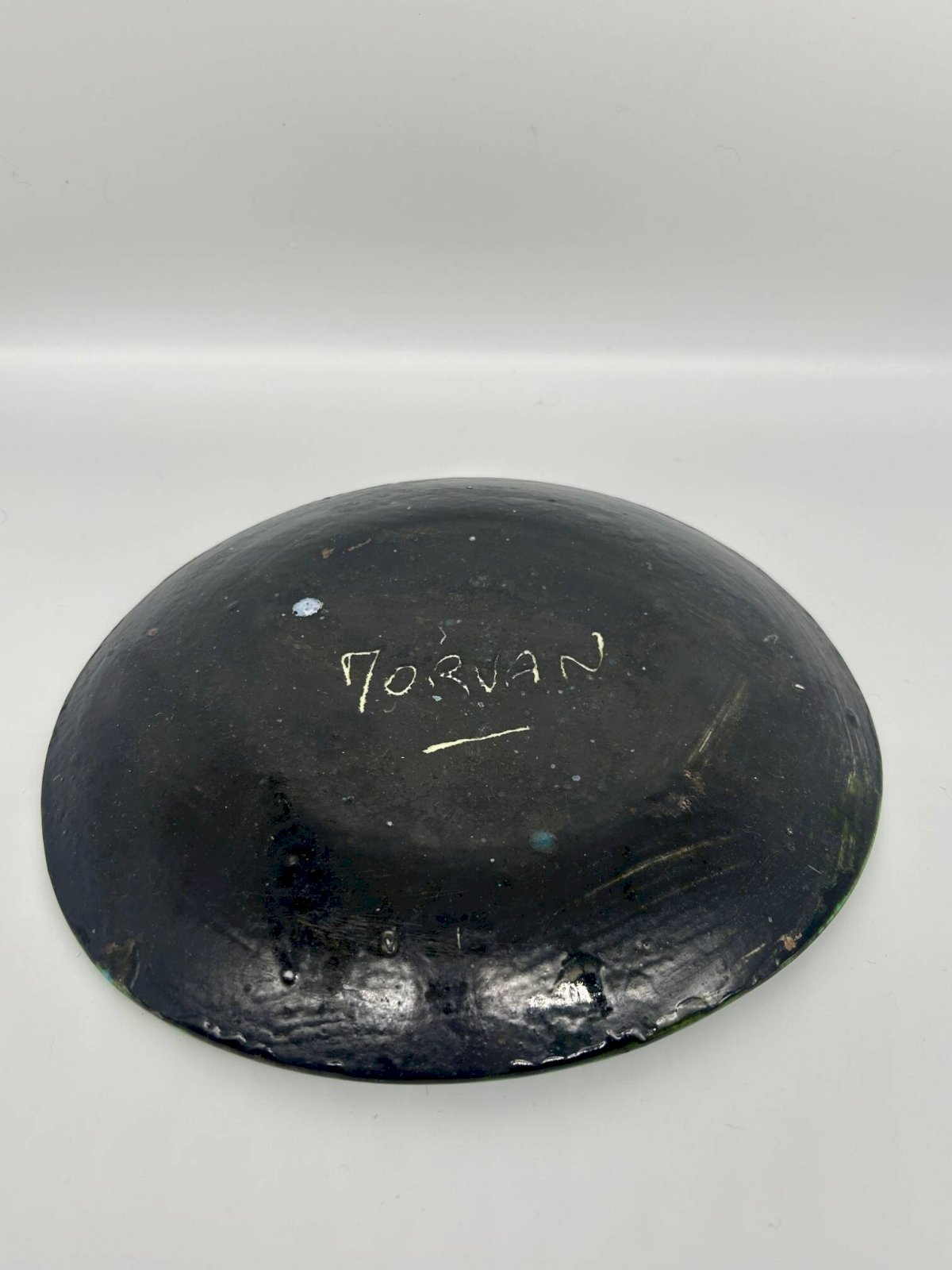 Ceramic catchall signed Morvan. The Morvan ceramics were created in 1932 by Gaston Gaubier, who came from a large family in ceramics. Morvan ceramics are recognizable by their so-called flamed earthenware, glazed with colored oxides. L: 25 W: 22 H: 3