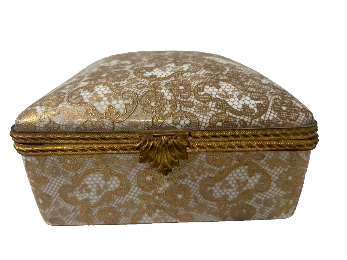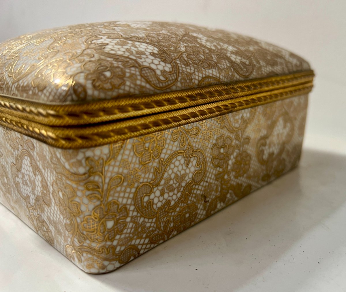 Polychrome porcelain box with gold highlights Hand-painted by "LE CALLEC in Paris Bears the blue mark of the factory Good condition Dimensions H 8.5 x L 21 x W 18 cm XX century Type: Showcase item, Decorative Period: 20th century design Origin: France Subtype: Box Country of origin: France Height: 8.5 Material: Porcelain Length: 21 Width: 18