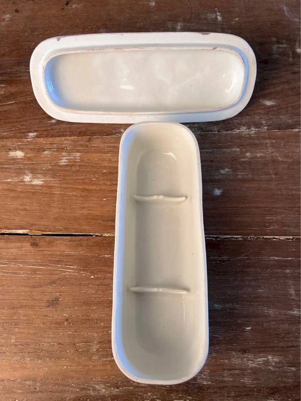 Toothbrush (or makeup) box in fine 19th century, early 20th century porcelain.