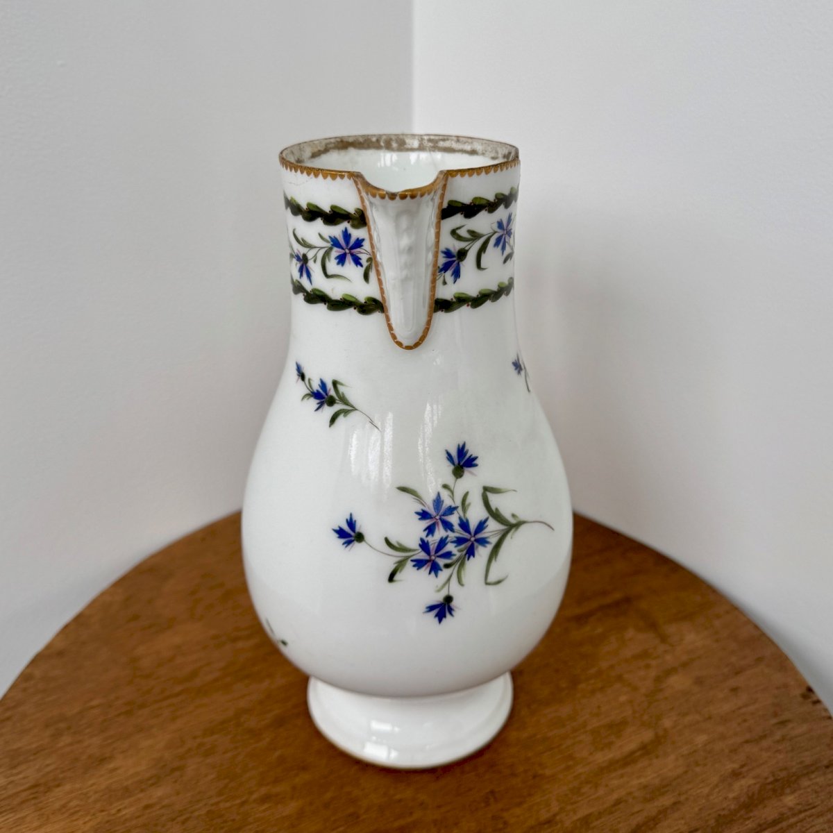 Porcelain jug with barley decoration XVIII M3961 This XVIII century porcelain jug features a barley decoration and a stamp on the bottom. Regarding its condition, there are signs of wear to the gilding, a chip on the rim, a glued accident, and a hairline crack. Our photos allow you to appreciate the quality of the item. For the condition, please examine the photos closely. Don't hesitate to zoom in. The photos are an integral part of the description. Dimensions: Height: 21 cm Width: 16.5 cm Neck diameter: 7.4 cm Belly diameter: 11.8 cm Base diameter: 8 cm A: JS2PJ2HK59 P: 1683852 I remain at your disposal for any questions. Type: Showcase object, Decorative Origin: France Country of origin: Metropolitan France Sub-type: Jug Height: 21 cm Material: Porcelain Length: cm Width: 16.5 cm