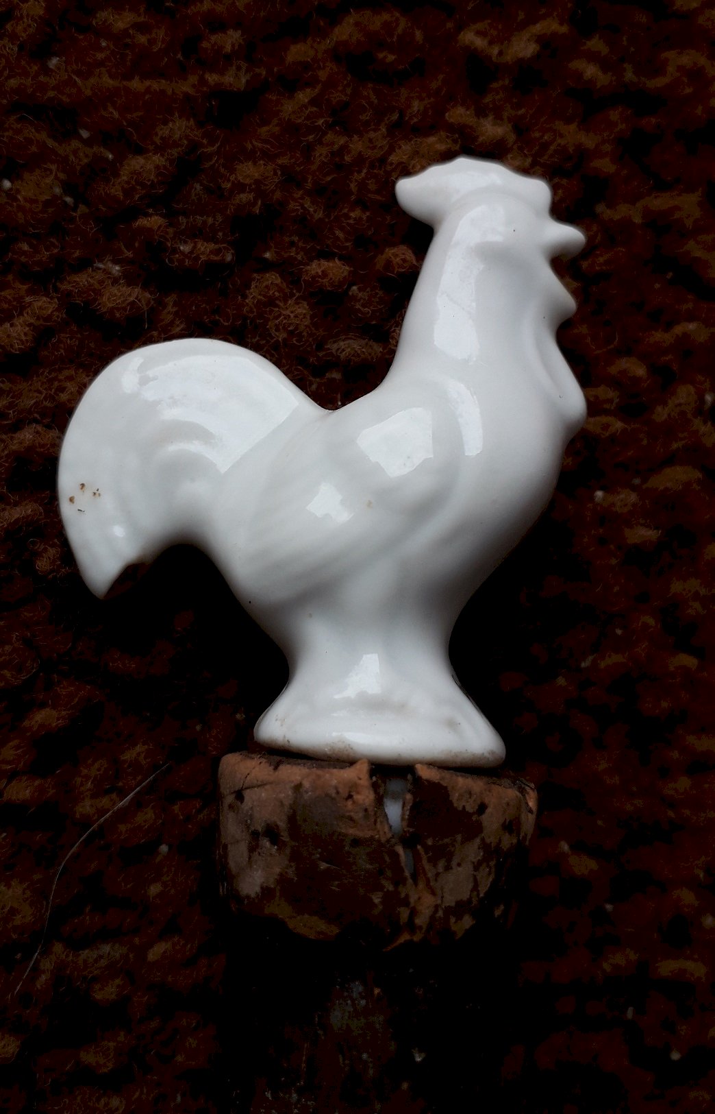 German-made rooster-shaped bottle stopper, mounted on a cork stopper.