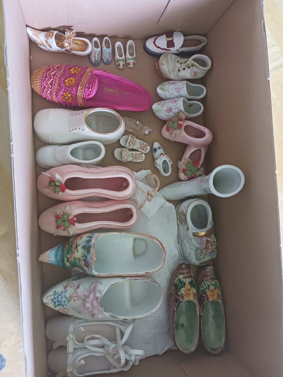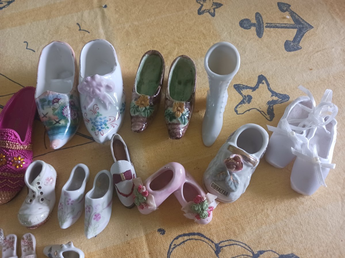 28 porcelain shoes in very good condition of different sizes and colors (flip-flops, sneakers, high heels, dance slippers, clogs...etc)
