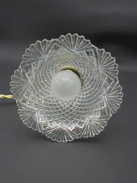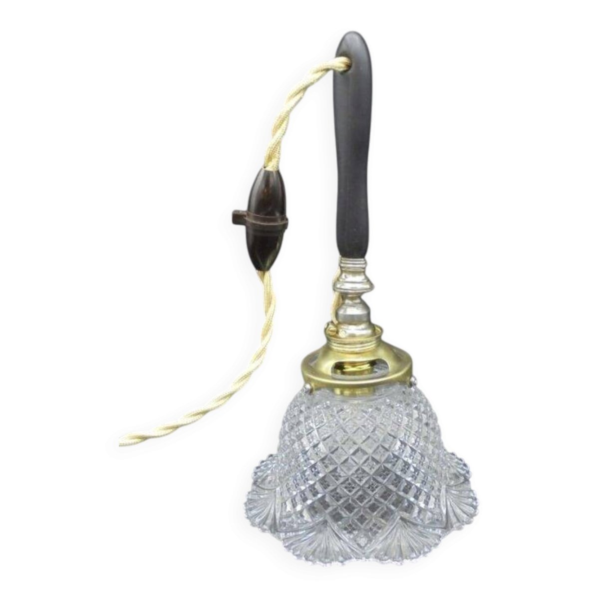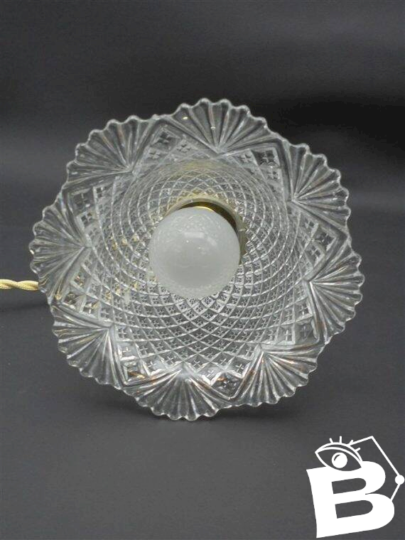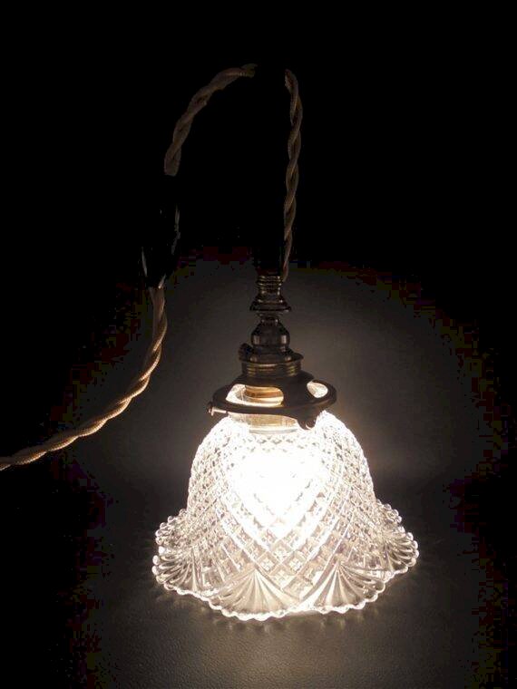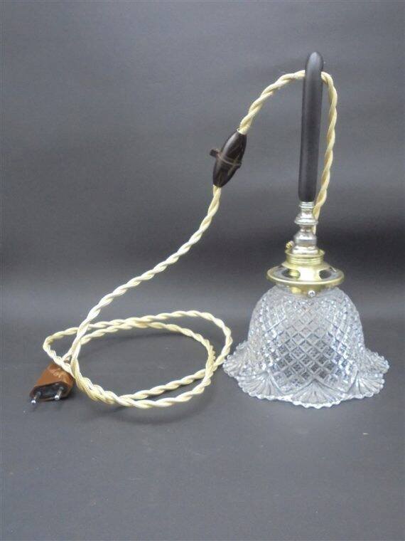 Portable, superb glass or crystal tulip, to be hung on a hook or a coat rack for example. Height: 26 cm. Diameter: 14.5 cm. Cable length: 125 cm. Weight: 560 g. L: 14 W: 14 H: 26