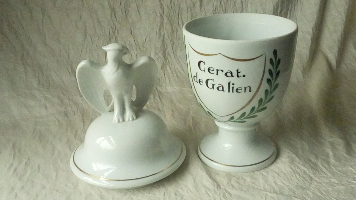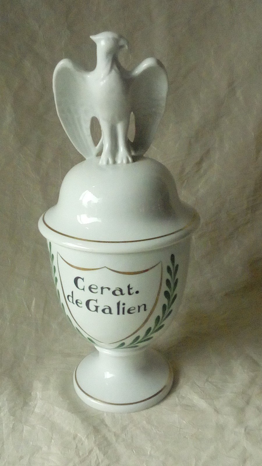 VERY BEAUTIFUL PHARMACY JAR APOTHECARY JAR IN PORCELAIN ROYAL EAGLE NAPOLEON III STYLE DECORATION BEE LAUREL LEAF CERAT. BY GALIEN DECOR OF PARIS HEIGHT 30 cm DIAMETER 11.50 cm Condition: Used Item has been used. any imperfections. Country of origin: France Period: After 1950 Type: PHARMACY Sub-type: APOTHECARY JAR Material: PORCELAIN