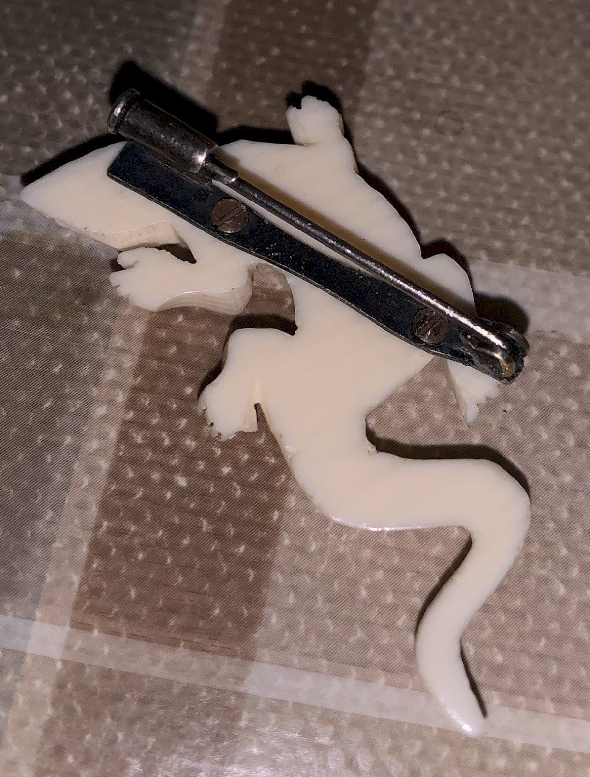 Beautiful Art Deco brooch from the 1920s-1930s sculpted featuring a lizard. Good condition. Length: 5cm Width: 2.5cm Condition: Pre-owned item showing signs of wear. Possible imperfections. Type: Brooch Dominant color: Multicolored Material: Bone