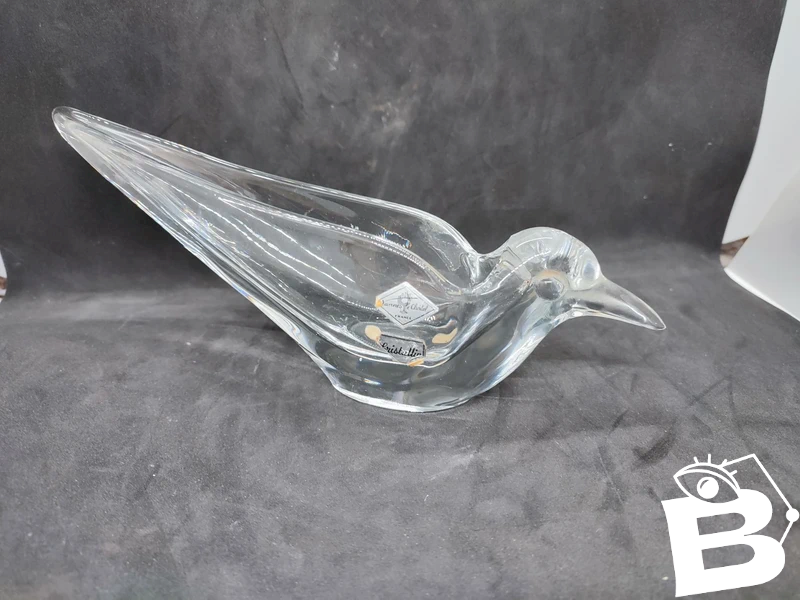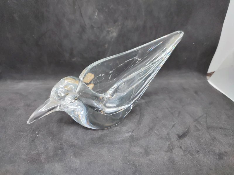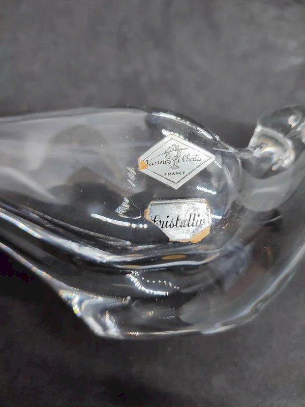 pretty crystal dish signed Art Vannes in the shape of a bird in good condition, small normal wear marks on the bottom, length 24cm, width 6.5cm, height 10cm...
