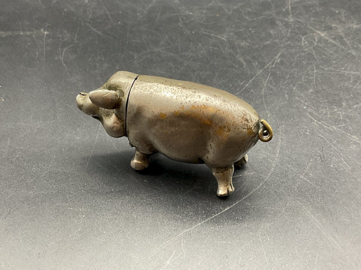 Pyrogene pocket matchbox late 19th century pig Condition: Used: Item that has been used. Please consult the seller's description for more details... Used: Item that has been used. any potential imperfections. Period: Antique (before 1900) Type: Pyrogene Country of manufacture: France Style: Sculpted, Engraved Material: metal