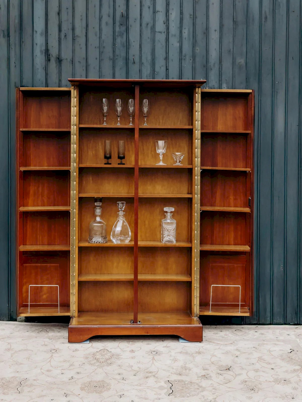Invite a warm and structured presence into your home with this very large cherry wood bar cabinet featuring light and dark tones. Its adjustable shelves and two side doors provide ample modular storage for bottles, glassware, and accessories, while its generous proportions suit both a long sideboard and a convivial bar corner. The crafted wood brings a natural softness and an elegant silhouette, perfect for enlivening a reception room. Length: 85 cm Maximum open length: 167 cm Width: 66 cm Height: 164 cm Condition: Used: Item has been used. Item shows some superficial signs of wear... Used: Item has been used. Item shows some superficial signs of wear, fully operational and working correctly. It may be a demonstration model or an item returned to the store after a short period of use. Possible imperfections. Brand: Debongout Type: Vintage product Material: Wood Style: Contemporary Custom: Bar furniture.