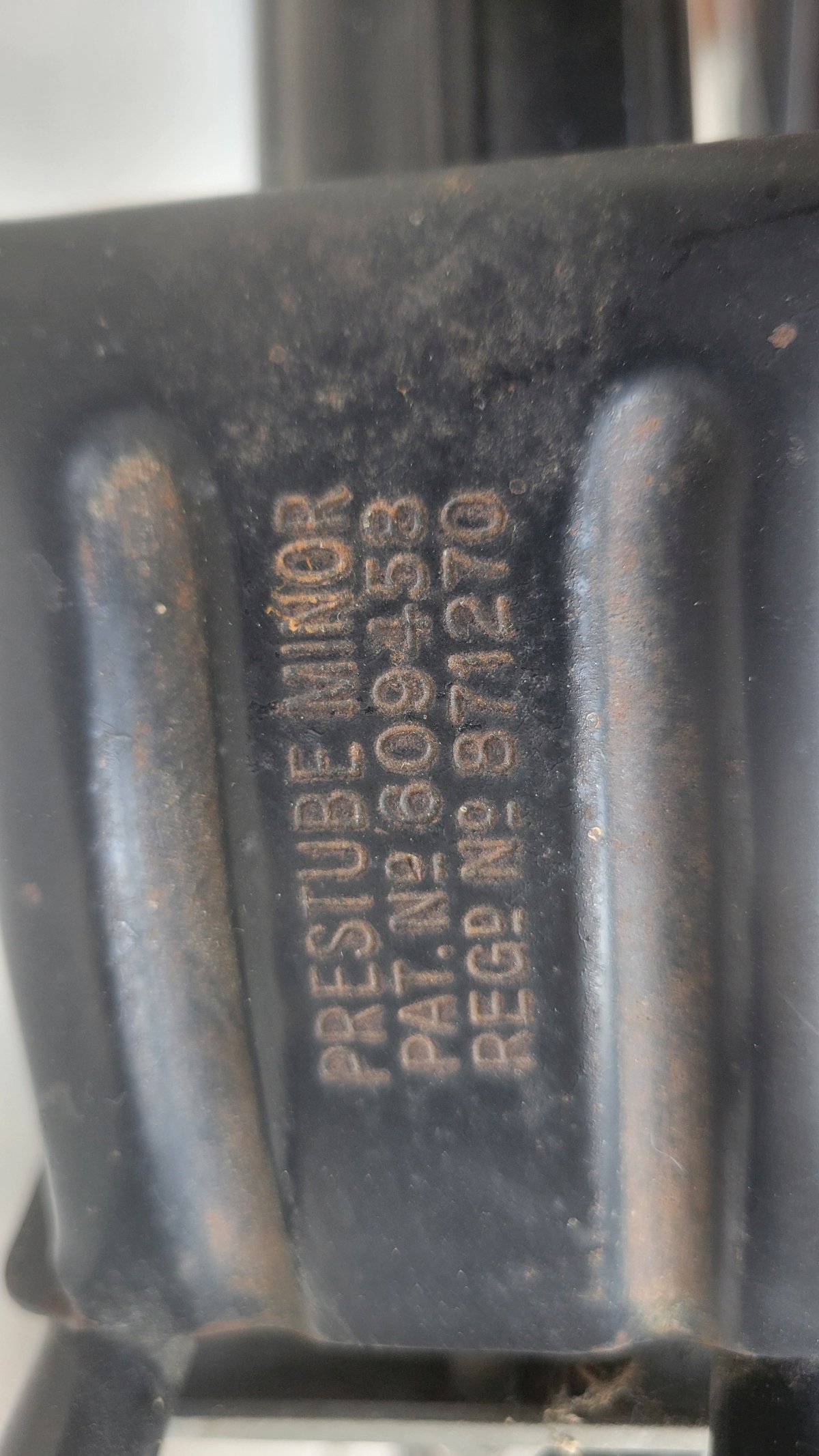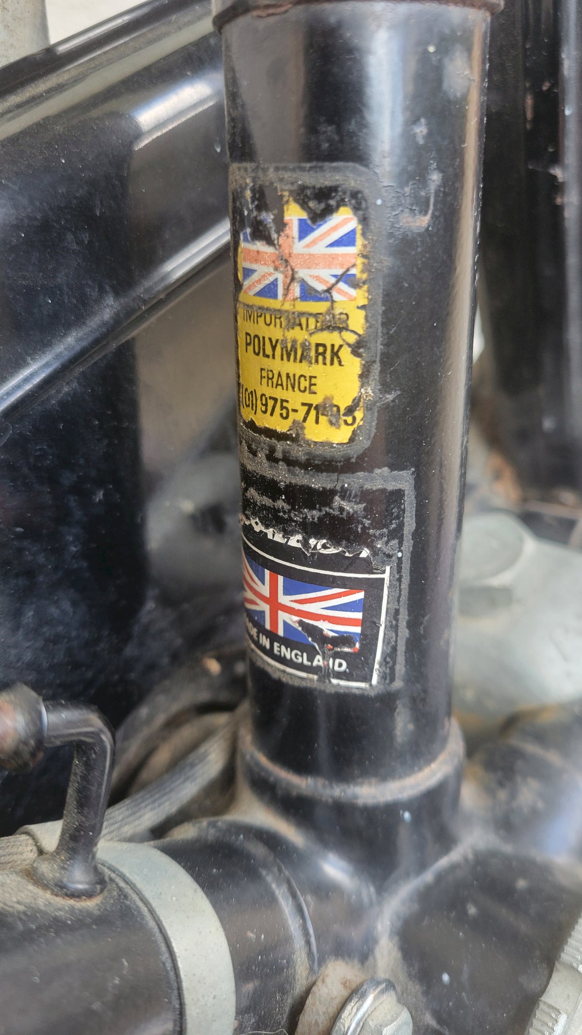 The authentic brand stickers are still visible with the bike's serial numbers.