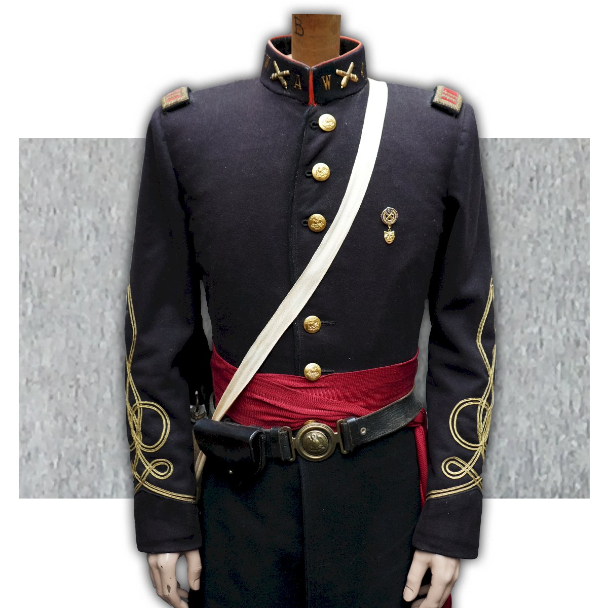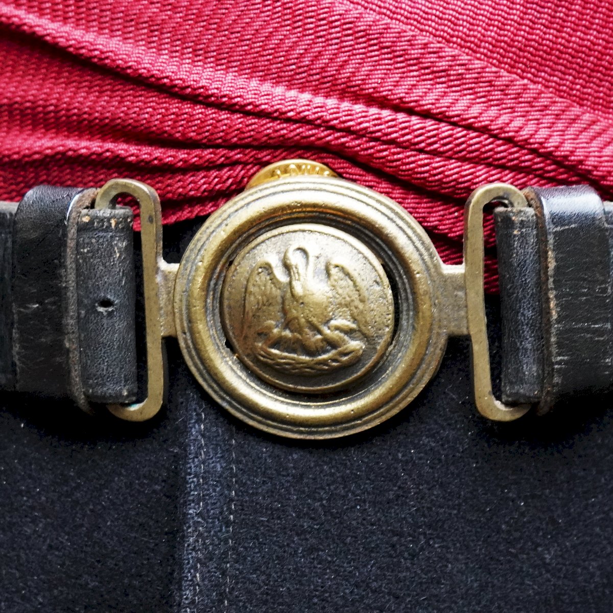 Homogeneous set of a senior officer (colonel?) from Louisiana (?), probably early to mid-20th century to be verified. Recovered as is. The tunic is in good condition with embroidery on the sleeves, white pants stained, cap in good condition as it is. With scarf, belt, ammo pouch, and empty leather holster. The golden buttons are all stamped with the motto "Louisiana" + a symbol - stork. A very beautiful set that is quite uncommon, recovered in its condition; not being a specialist, I set a more than reasonable price!!!