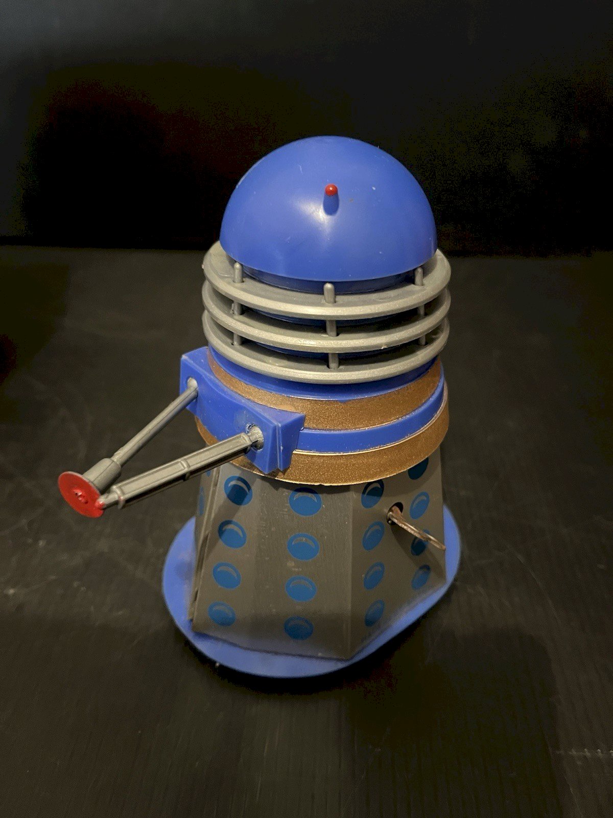 Rare robot from the English science fiction series Doctor Who, dating from 1965, licensed by the BBC. It is friction-powered and works despite a certain stiffness. Note that one of the upper antennas is broken; the piece is present (see photos). The box is in good used condition: height 13 cm, diameter 10 cm, made of plastic and metal. Look at the photos above, which will also serve as a description. Careful and secure packaging with the option to ship via postal service to be selected at the time of purchase for calculating shipping costs (otherwise, standard Mondial Relay shipping). Thank you all and happy hunting in my shop. Returns accepted within 14 days of receipt, in original packaging, in its initial condition; no refunds for items returned broken or lost by the carrier, return shipping costs are the buyer's responsibility. Don't hesitate to add my shop to your favorites! Condition: Used item. Please consult the seller's description for more details ... Used item. Any imperfections. Type: Ships and spacecraft. Material: Plastic. Year: 1965. Theme: Doctor Who.