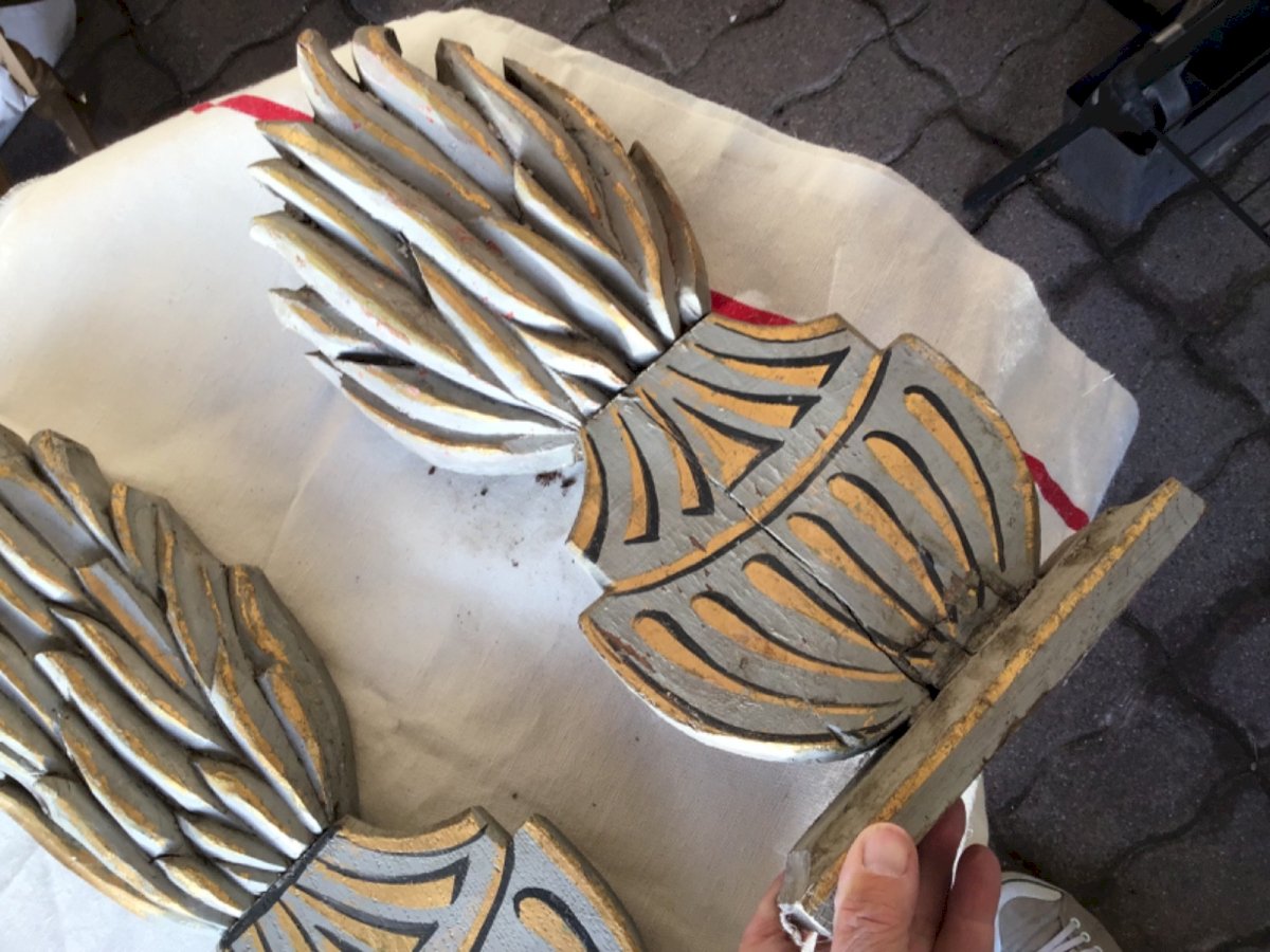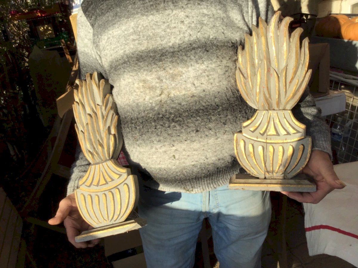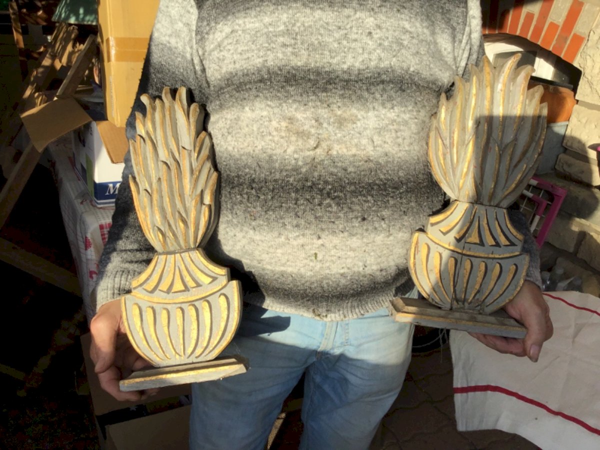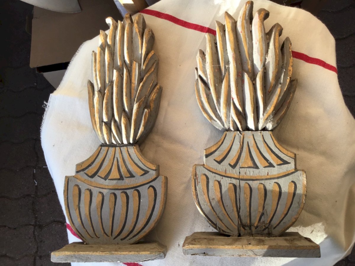 Rare 2 flame trompe l'œil in wood Probably a theater or wall decoration Height approximately 40 cm Heavy and of beautiful quality 19th or 18th century Very beautiful decoration to create Thickness 5 cm Height: 40 cm Material: Wood