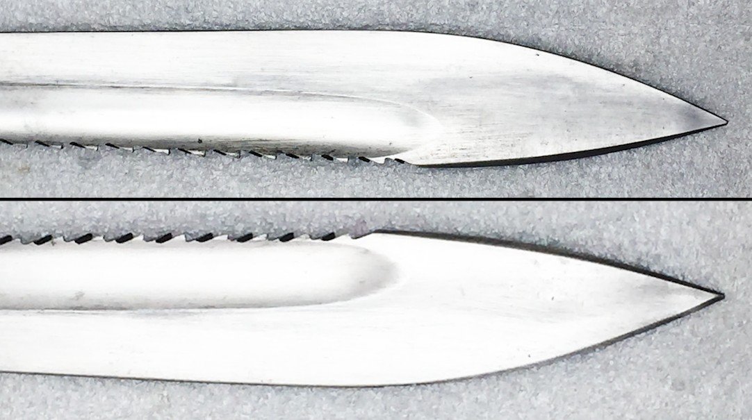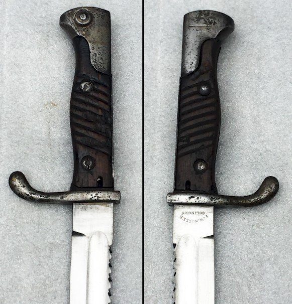 Model of the so-called "butcher" with a large saw-back BLUTCHER. Prohibited after the end of the Great War, it is quite difficult to find saw-back specimens, as only those lost during the war have been preserved, those recovered by the Army or the enemy being destroyed or modified.