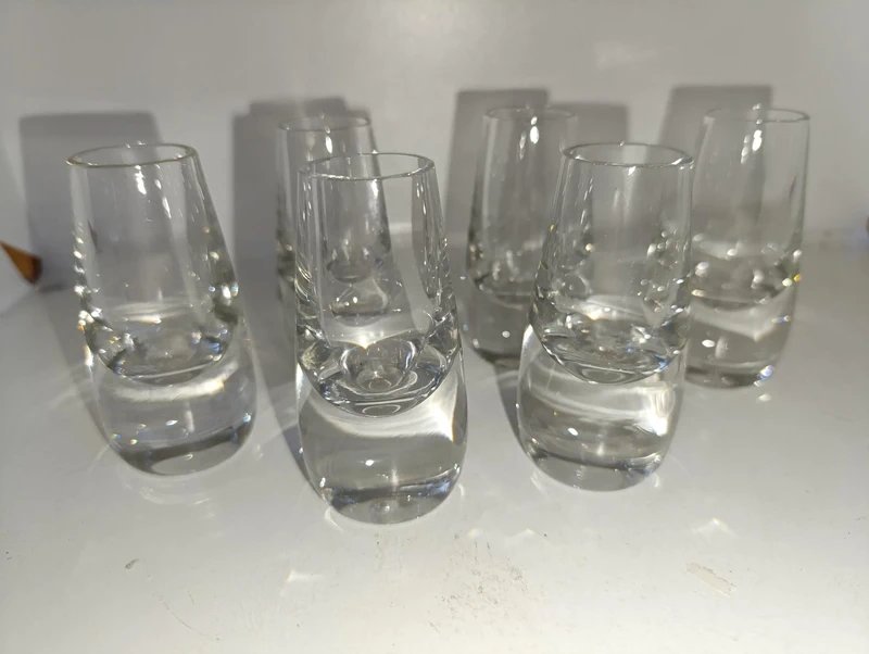 Set of 6 alcohol/liquor glasses, in cut crystal, Germany