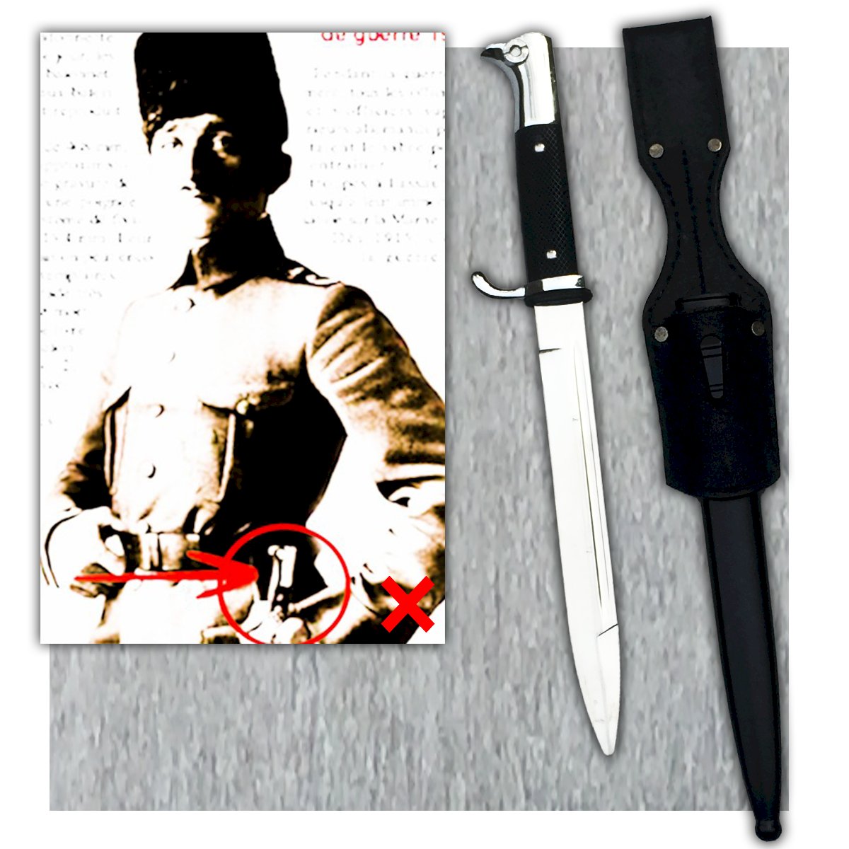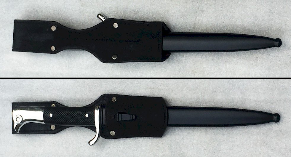 Very beautiful Prussian or German type dagger/bayonet. Black checkered handle, wood and iron. The blade is in good condition, still shiny with traces of age, the sheath still has its black paint as well as its small fixing rivet. Very beautiful dagger, totally homogeneous. Also in force in the Ottoman Empire during the First World War. Very pleasant to hold and just delicious when displayed in a window, a real gem! Really very rare in this condition, similar to the original in every way!
