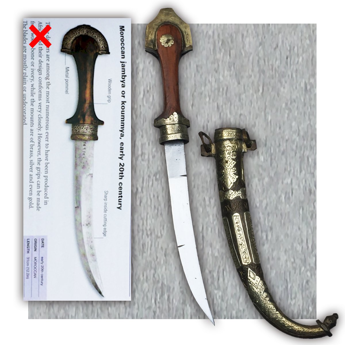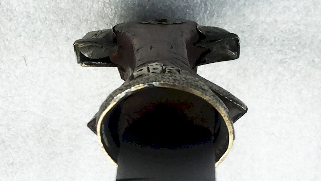 Very beautiful and rare "Khandjar / Koumia". The handle and sheath are richly decorated with silver plating. Very clean blade with two central grooves. Very beautiful and sturdy short sabre/dagger, rare in this state of preservation. Stamped at the heel, sheath with sculpted silver plating (silver-plated?). The blade is in good condition with signs of age, needs cleaning! A very beautiful piece found in the attic in its original condition! A truly beautiful and sumptuous piece that is starting to become rare in good condition and especially complete! Very pleasant to hold and even more enjoyable to observe in its display case! 100% original!!!