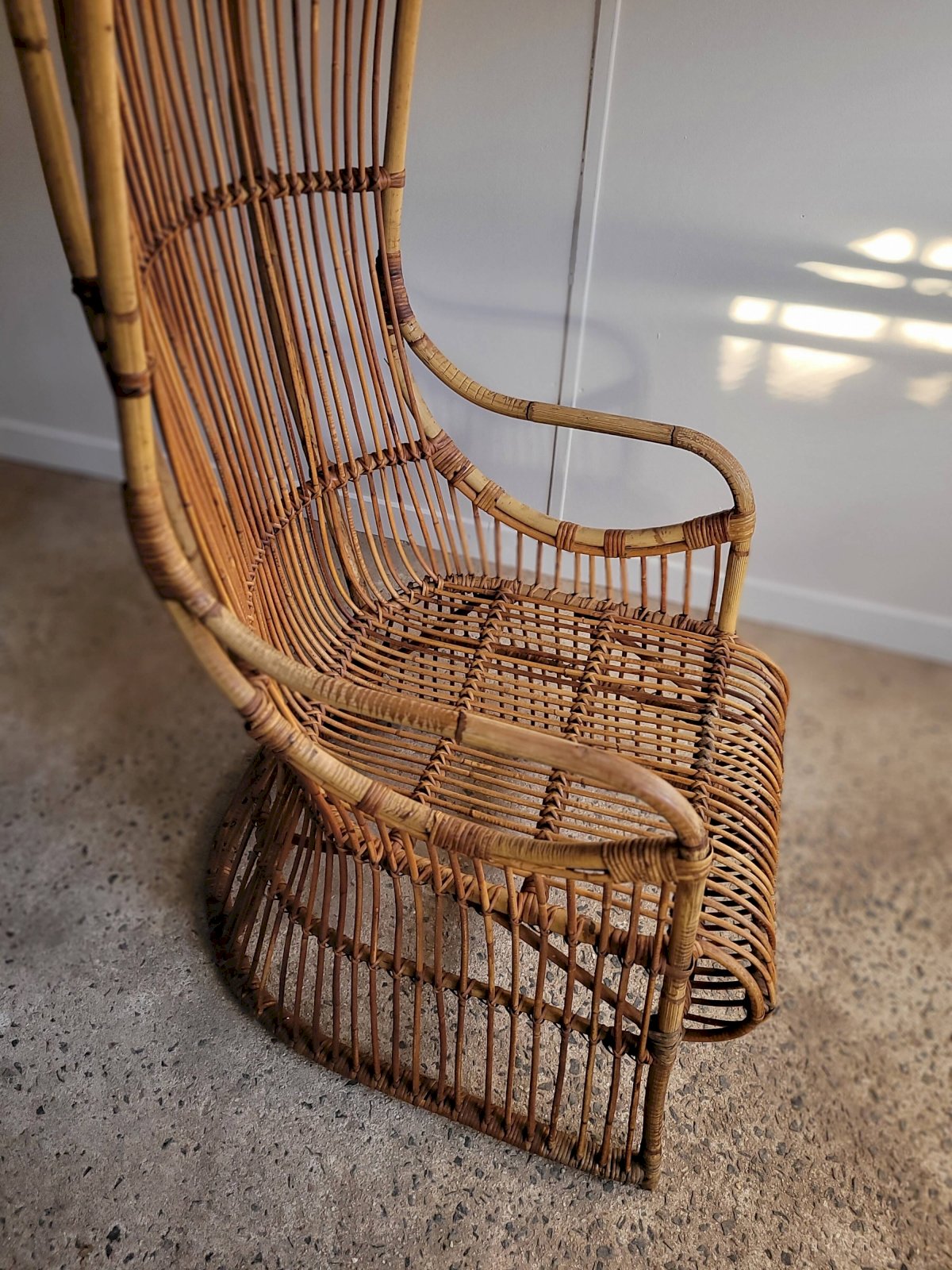 One can easily imagine this vintage chair in all kinds of interiors! In good general condition (see photos). Dimensions: 56 X 165 X 70 cm (W X H X D). W: 56 D: 70 H: 165