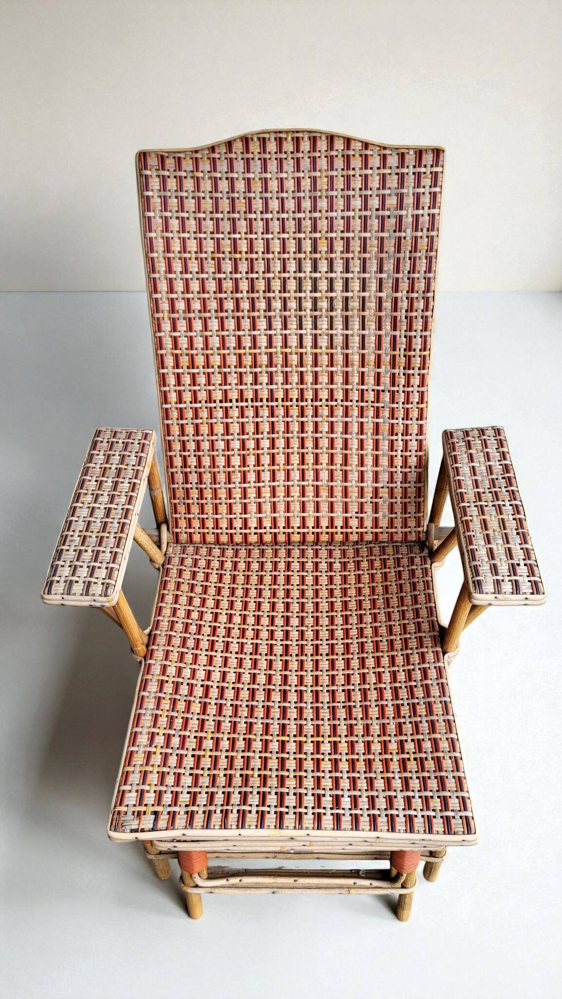 Rattan chaise longue with footrest / gingham pattern. It is in good condition.
