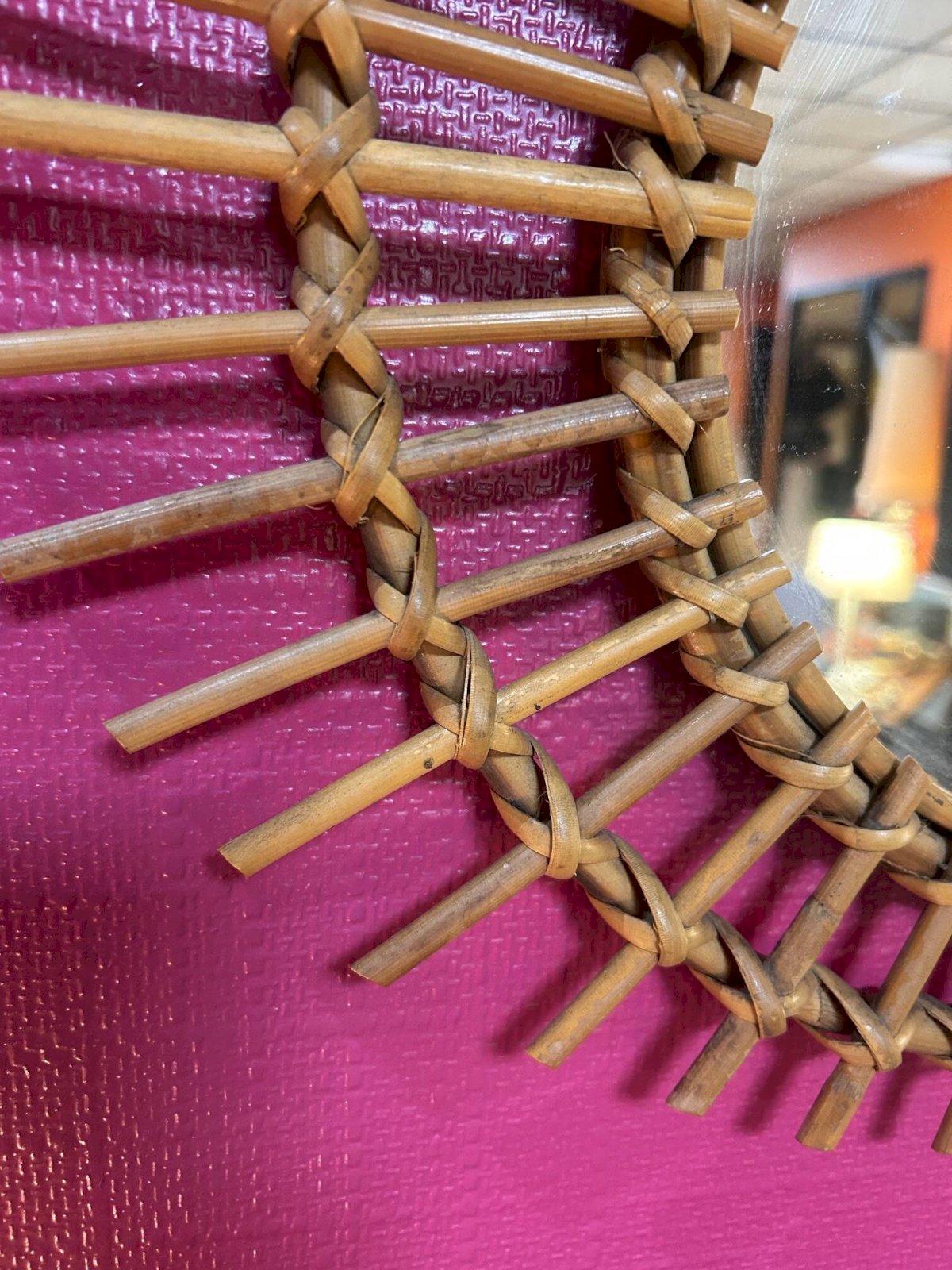 Vintage rattan mirror/1970s/rattan sun mirror/vintage Rattan Mirror