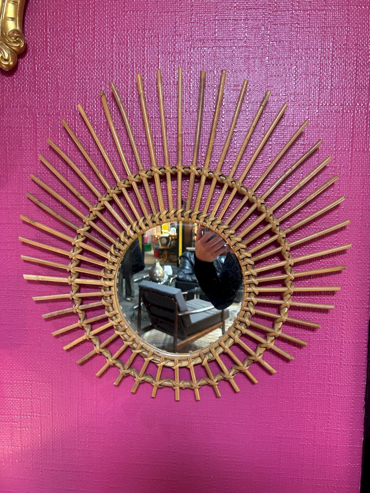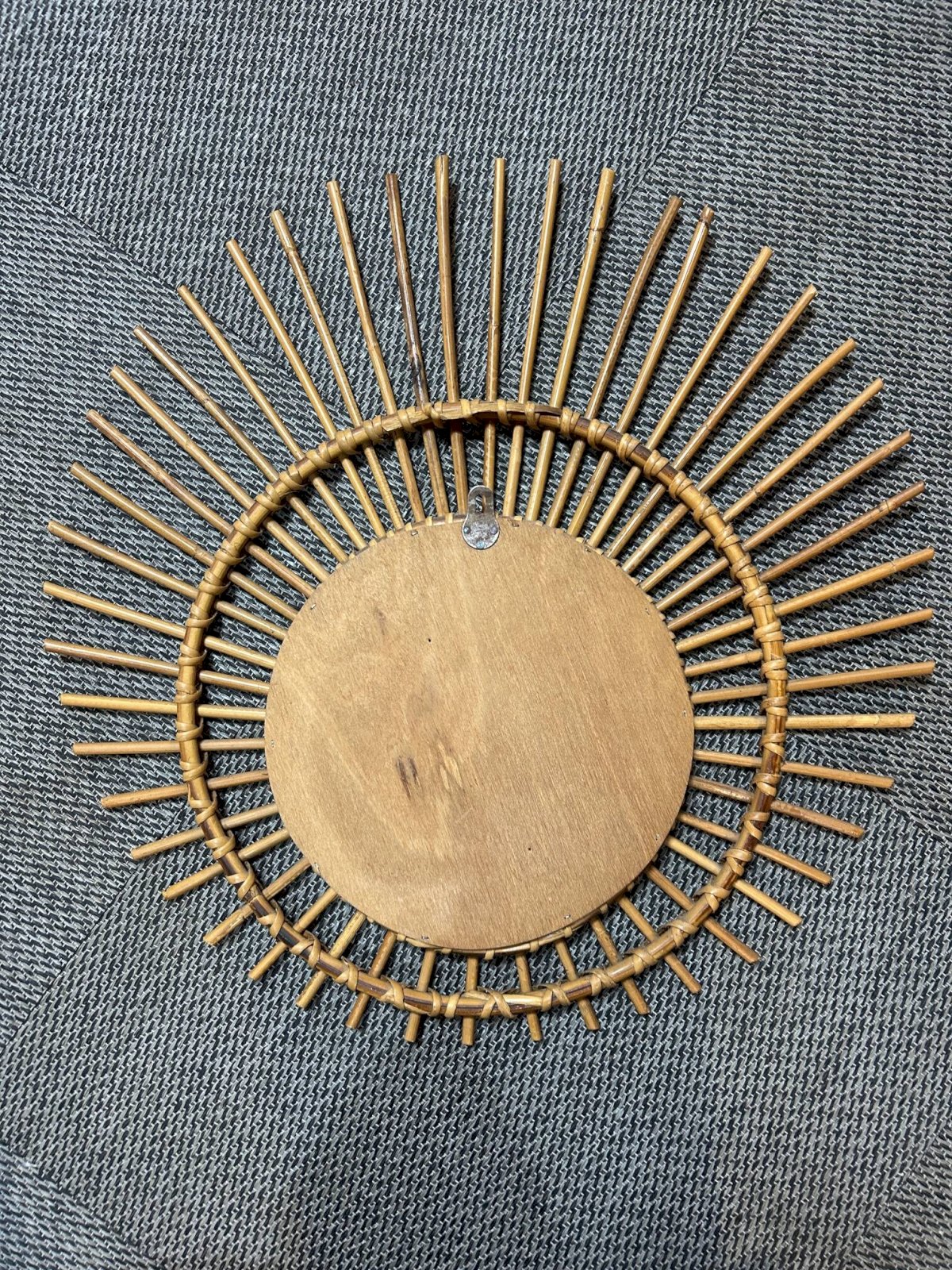 Old vintage rattan sun mirror / 1970s / vintage rattan mirror