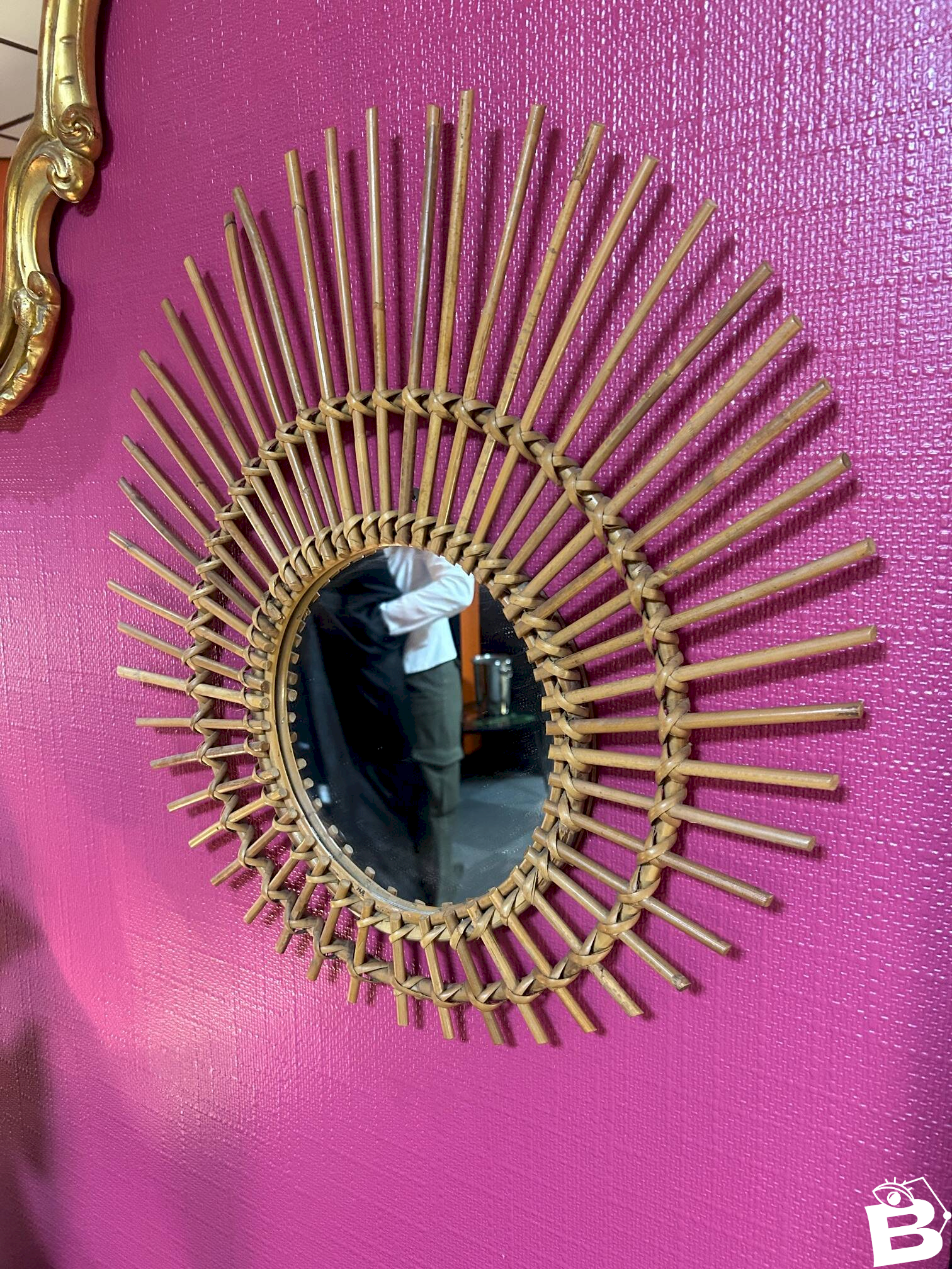 Pretty sun mirror in woven wooden rattan, rattan? warm vintage style