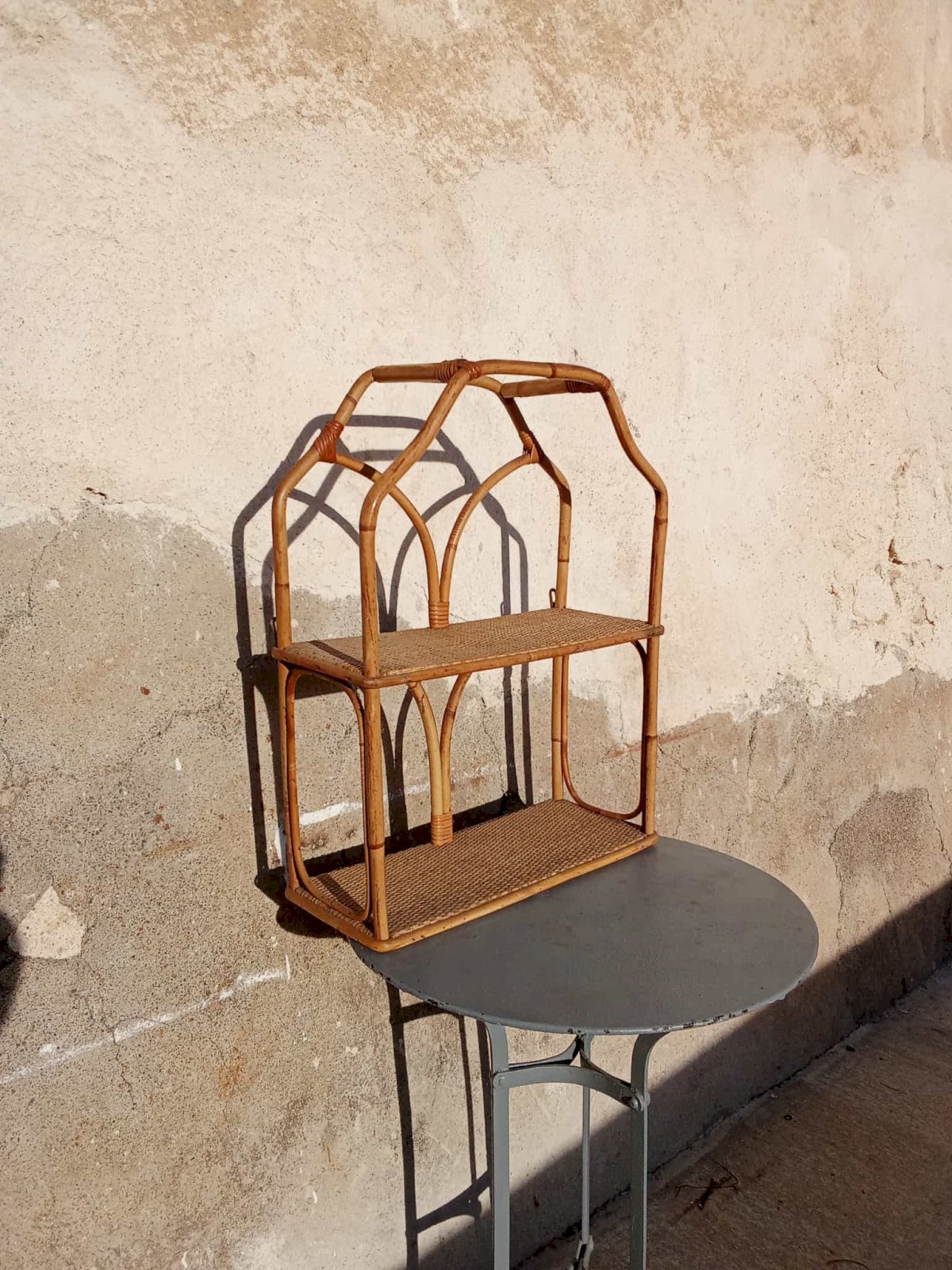 Wall-mounted corner shelf in painted wood, oriental Moroccan bohemian style?