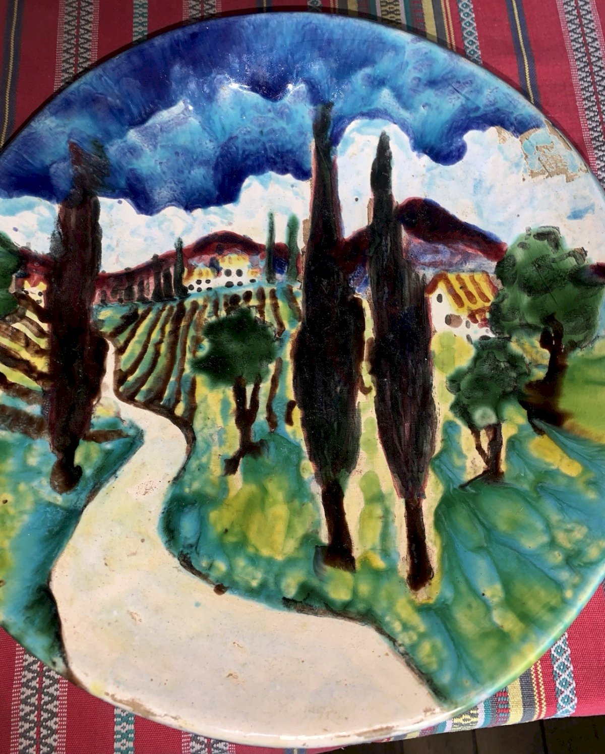 Raymond Weill ceramic plate impressionist landscape village in the south of France
