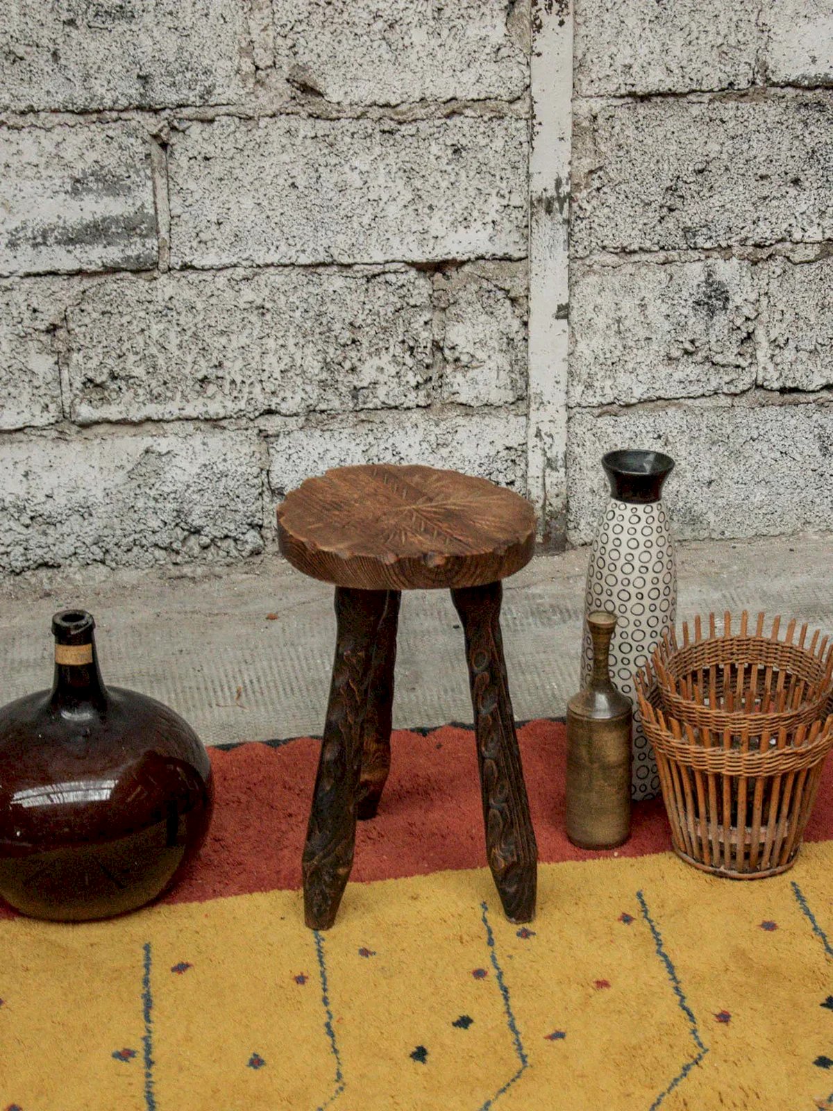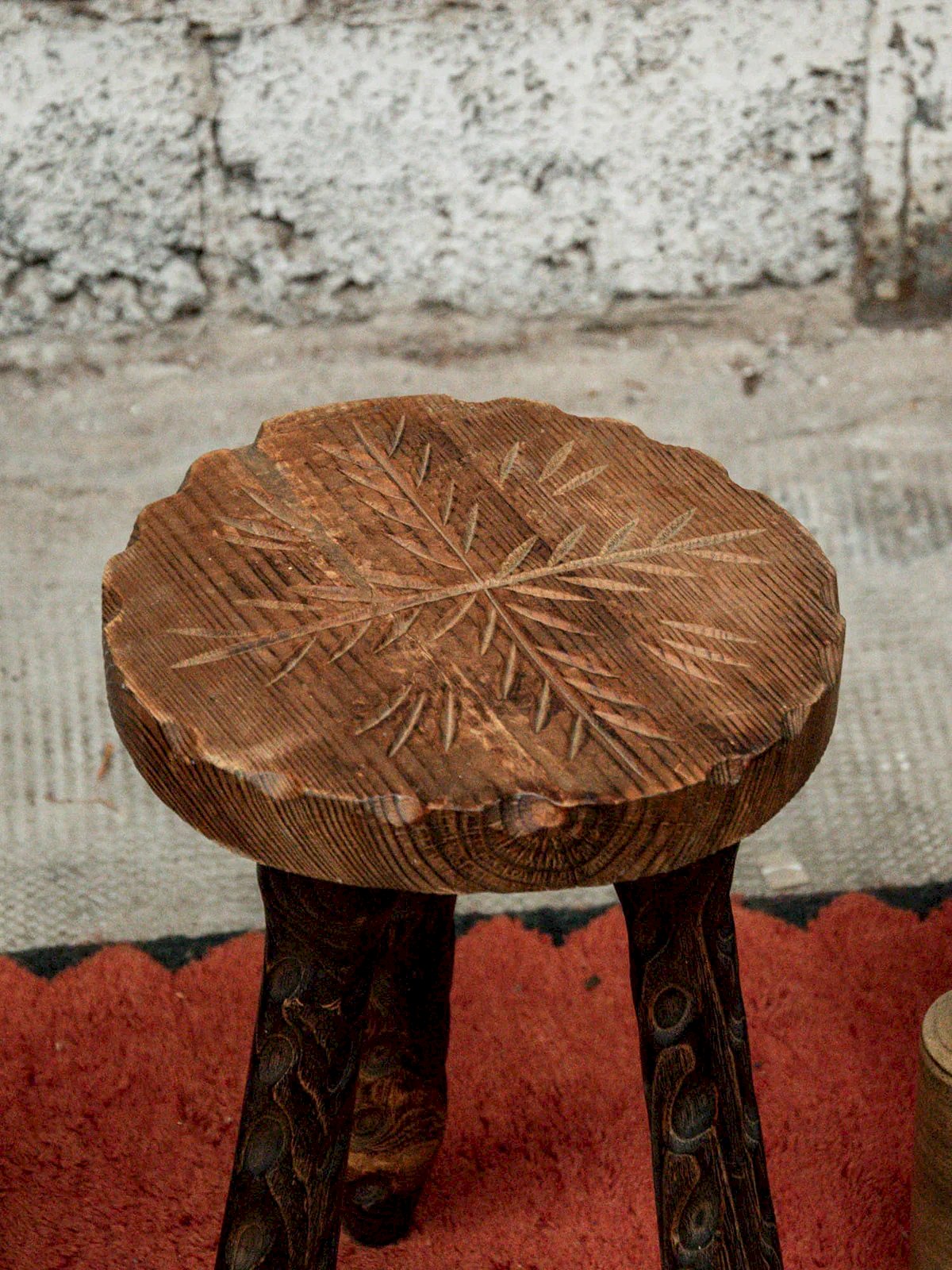 Add a unique touch to your interior with this engraved wooden stool in the shape of a star/snowflake, designed in an elegant brutalist style. Its dark wood material emphasizes the robust and timeless character of this versatile piece of furniture, perfect as a seat or decorative element. A unique piece thanks to its handcrafted engraving, offering rustic charm while harmoniously fitting into various environments. Treat yourself to a design accent that will surely appeal to lovers of authentic pieces. Height: 44 cm Seat diameter: 27.5 cm Condition: Used: An item that has been used. The item shows some superficial signs of wear, fully operational and working correctly. It may be a demonstration model or an item returned to the store after a short period of use, with possible imperfections. Color: Multicolor Height: Country Width: Wood Length: Low stools Brand: Debongout Type: Vintage product Material: Wood Style: Country Assembly required: No Assembly level: Fully assembled.