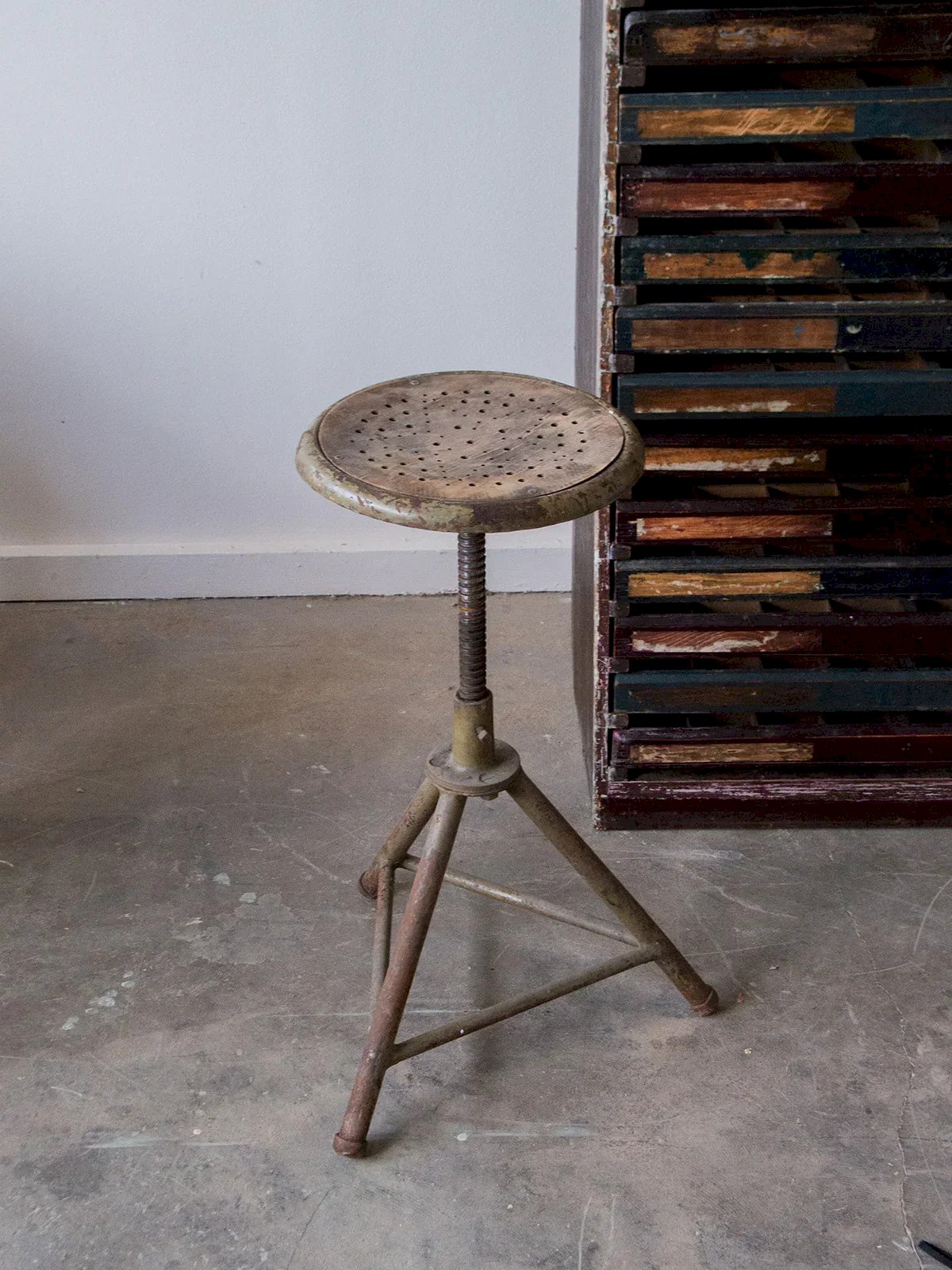 Discover our workshop stool with an industrial style, combining elegance and functionality. Its military green metal patina gives it a unique character, while the seat made of metal and wood ensures optimal comfort. With its geometric holes, this stool adds a modern touch to your interior. Adjustable in height, it adapts to all your desires and all your rooms. Redefine your space with this bold and aesthetic furniture. Minimum height: 47 cm Maximum height: 65 cm Seat diameter: 31 cm Condition: Used: Item that has been used. Item showing some superficial signs of wear, fully operational and functioning correctly. It may be a display model or an item returned to the store after a short period of use, with possible imperfections. Color: Multicolor Height: Country Style Width: Metal Length: Low Stools Brand: Debongout Type: Thrifted Product Material: Metal Style: Country Assembly required: No Assembly level: Fully assembled