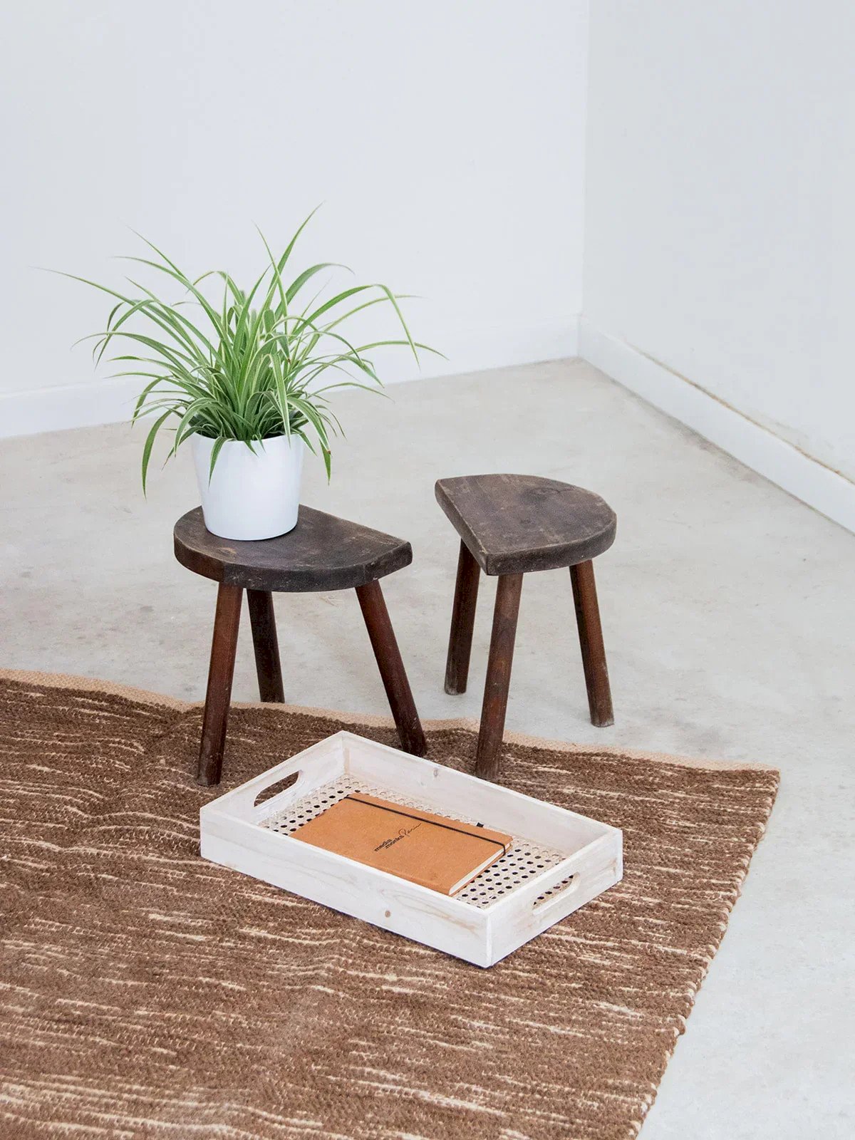 Add a nice vintage touch to your interior with this set of 2 small wooden stools in a brutalist style. These stools combine functionality and aesthetics. Their understated and authentic design makes them ideal statement pieces to enhance any space while offering practical comfort. Length: 27 cm Width: 18 cm Height: 27.5 cm Condition: Used: Item has been used. Item shows some superficial signs of wear, fully operational and working correctly. It may be a display model or an item returned to the store after a short period of use, including any imperfections. Color: Multicolor Height: Country Style Width: Wood Length: Low stools Brand: Debongout Type: Vintage product Material: Wood Style: Country Assembly required: No Assembly level: Fully assembled