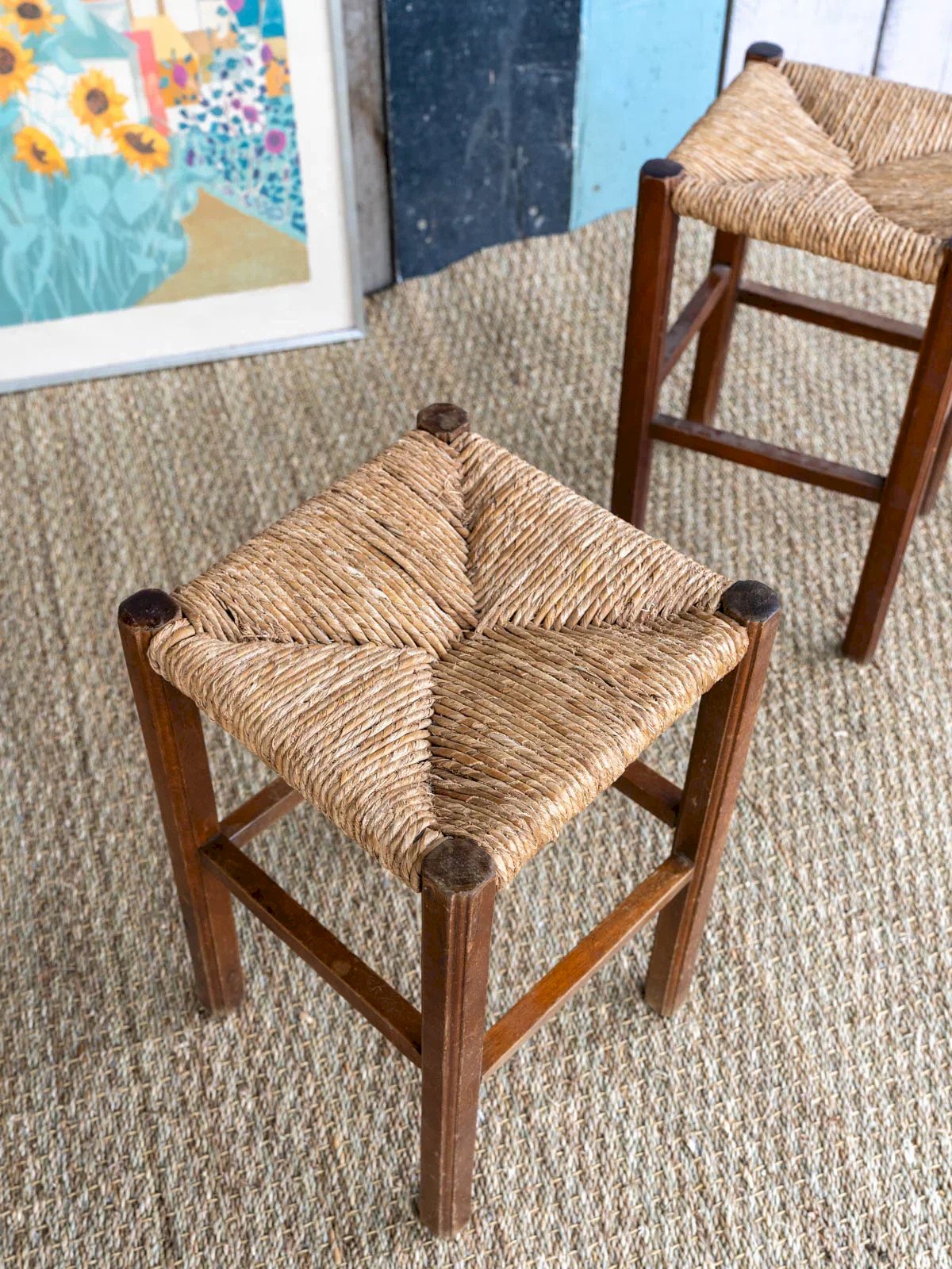 Bring a rustic and warm touch to your interior with our handmade straw stools. Their woven seat offers natural comfort, while their sturdy wooden structure ensures durability and stability. Perfect for a kitchen, around a table, or even as a side table, this timeless furniture adapts to all styles. With their sleek design, these stools add an authentic charm to your decor. Available in stock: 3 pieces ready to enhance your space. Treat yourself to a touch of authenticity today! Online exclusive, delivery will be at your home! Length: 29 cm Width: 29 cm Height: 45 cm Condition: Used: Item has been used. Item shows some superficial signs of wear, ...Used: Item has been used. Item shows some superficial signs of wear, fully operational and functioning correctly. It may be a display model or an item returned to the store after a short period of use. Any potential imperfections. Color: Multicolored Height: Country Width: Wood, Straw Length: Low stools Brand: Debongout Type: Vintage product Material: Wood, Straw Style: Country Assembly required: No Assembly level: Fully assembled