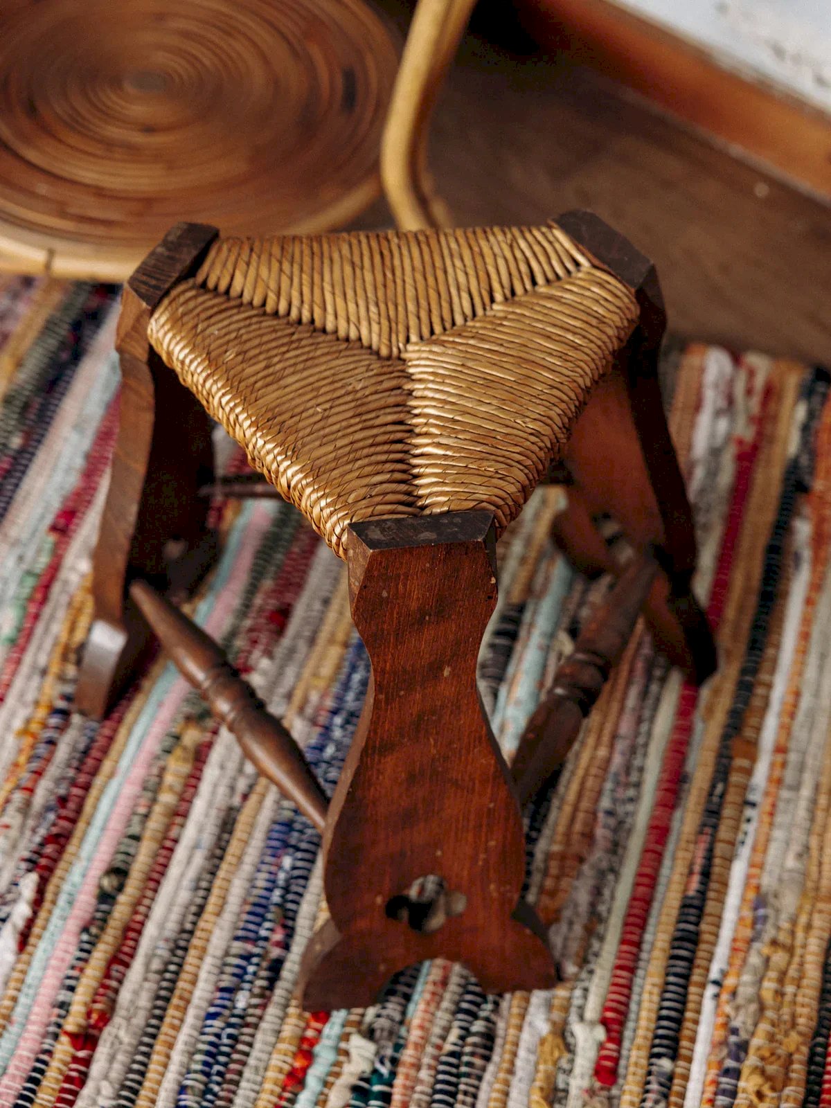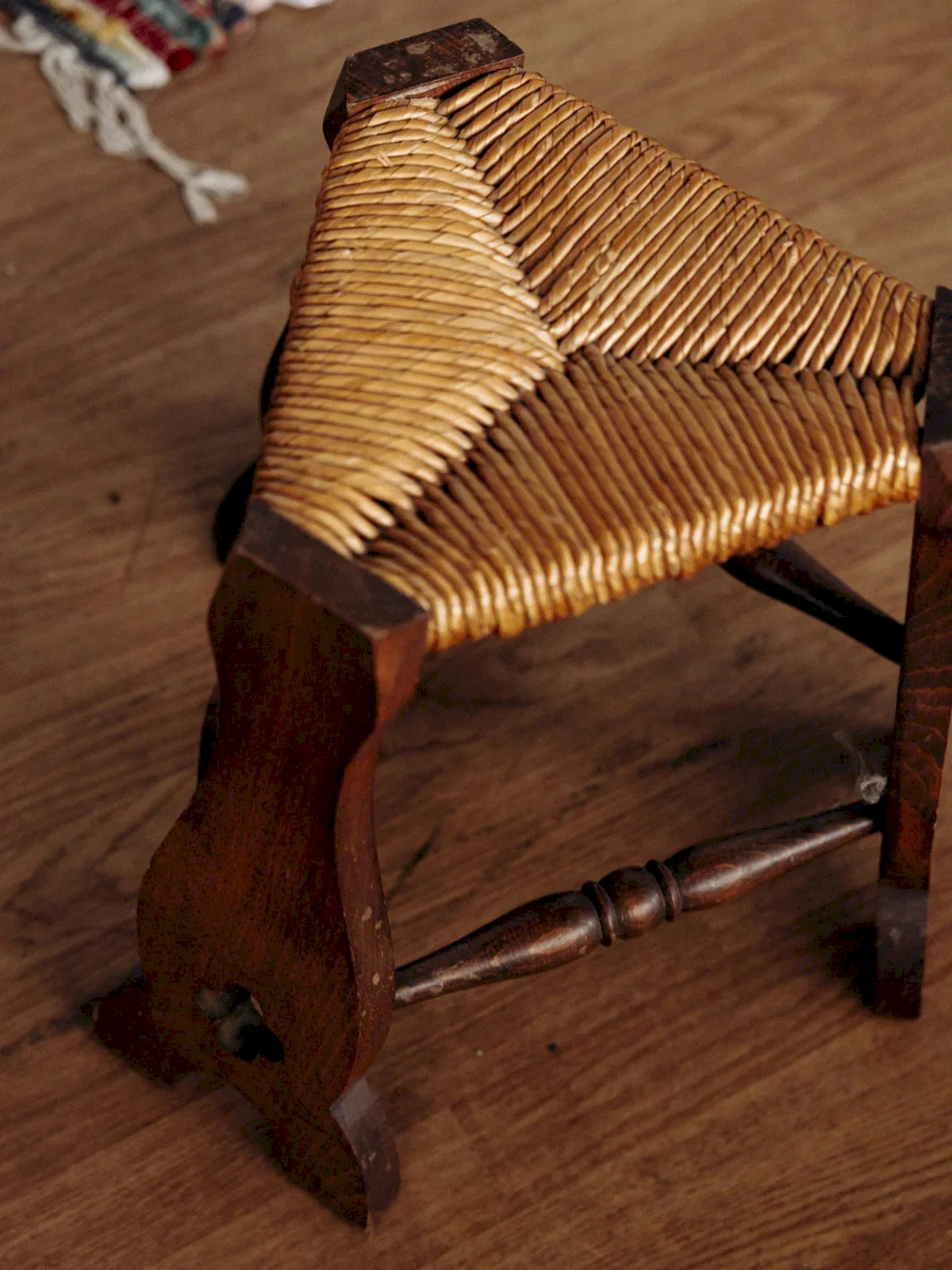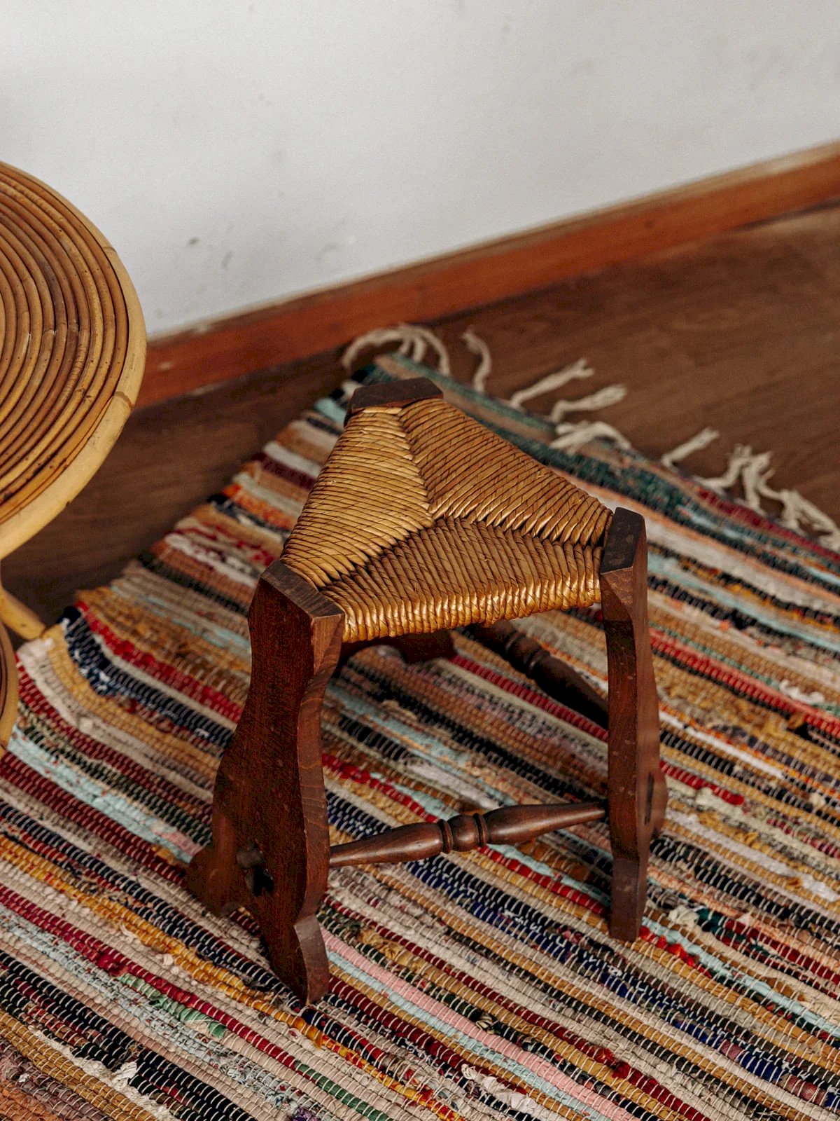 This small wooden and straw stool in a country style adds a rustic and authentic touch to your interior. Its straw seat and natural wood structure create a warm and welcoming atmosphere. Perfect for a decorative corner or as an extra piece, it brings charm and simplicity to your space. Length: 26 cm Width: 25.5 cm Height: 37 cm Condition: Used: Item that has been used. Item showing some superficial signs of wear, fully operational and functioning correctly. It may be a demonstration model or an item returned to the store after a short period of use. Any imperfections. Color: Multicolored Height: Country Width: Wood, Straw Length: Low stools Brand: Debongout Type: Vintage product Material: Wood, Straw Style: Country Assembly required: No Assembly level: Fully assembled.