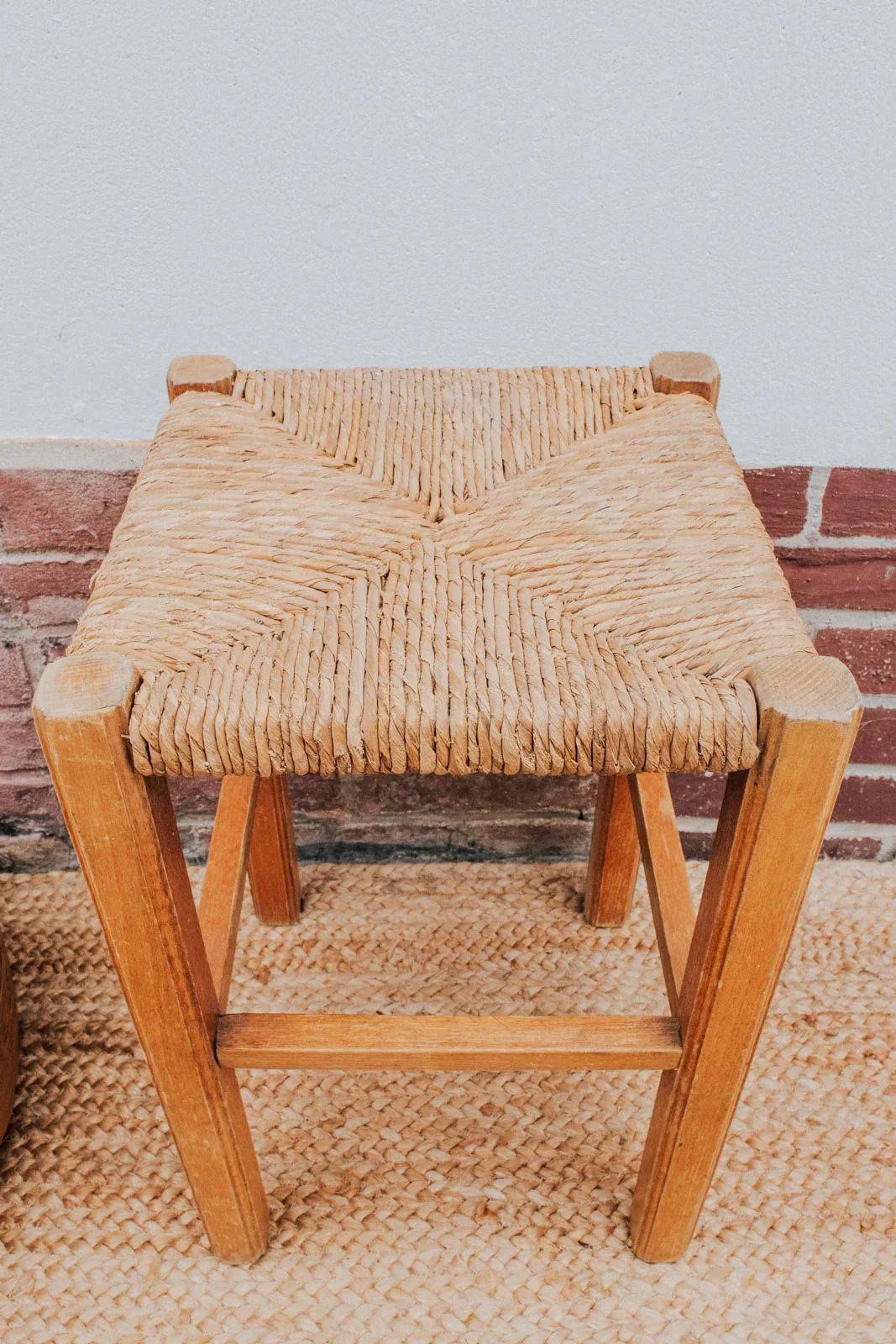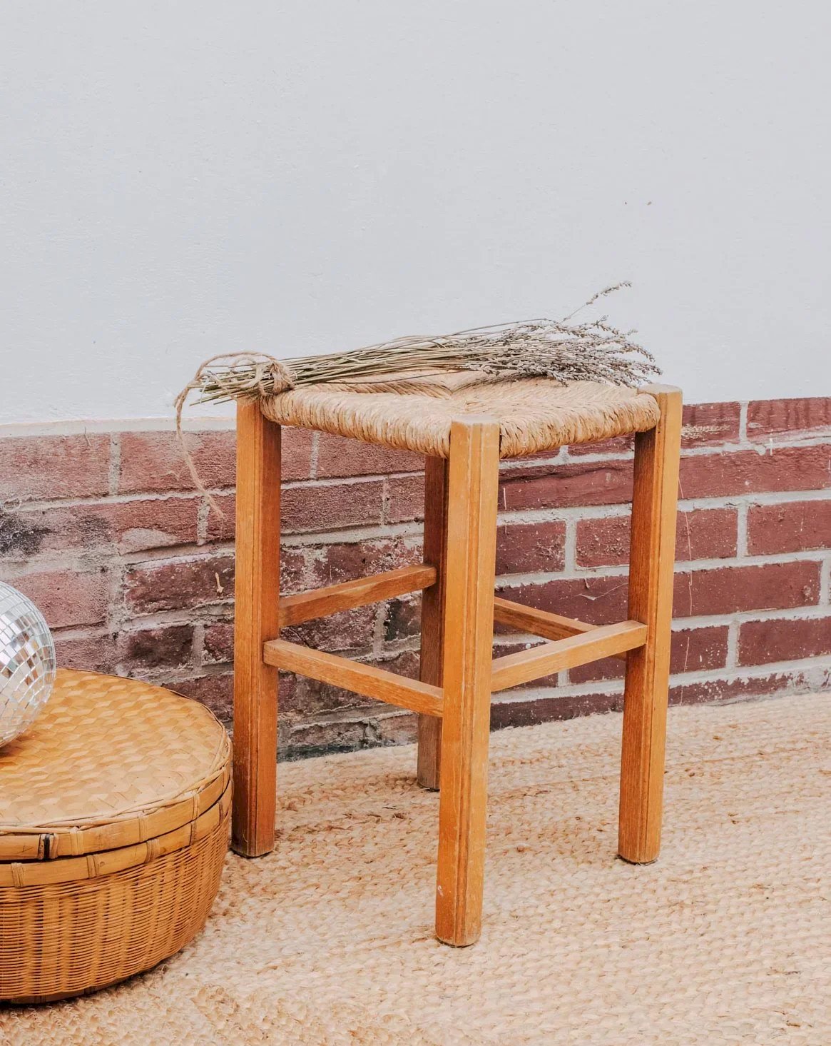Discover this rustic farm stool, blending patinated wood and a woven straw seat. Its original patina attests to its authenticity and history. Sturdy and warm, it fits perfectly in both a country-style kitchen and as an accent piece. Ideal as an extra seat or small decorative support. A classic full of character. Length: 29 cm Height: 45 cm Depth: 29 cm Condition: Used: Item has been used. Item shows some signs of superficial wear... Used: Item has been used. Item shows some signs of superficial wear, fully functional and operating correctly. It may be a demonstration model or an item returned to the store after a short period of use. any imperfections. Color: Multicolor Height: Country Width: Wood, Straw Length: Low stools Brand: Debongout Type: Vintage product Material: Wood, Straw Style: Country Assembly required: No Assembly level: Fully assembled