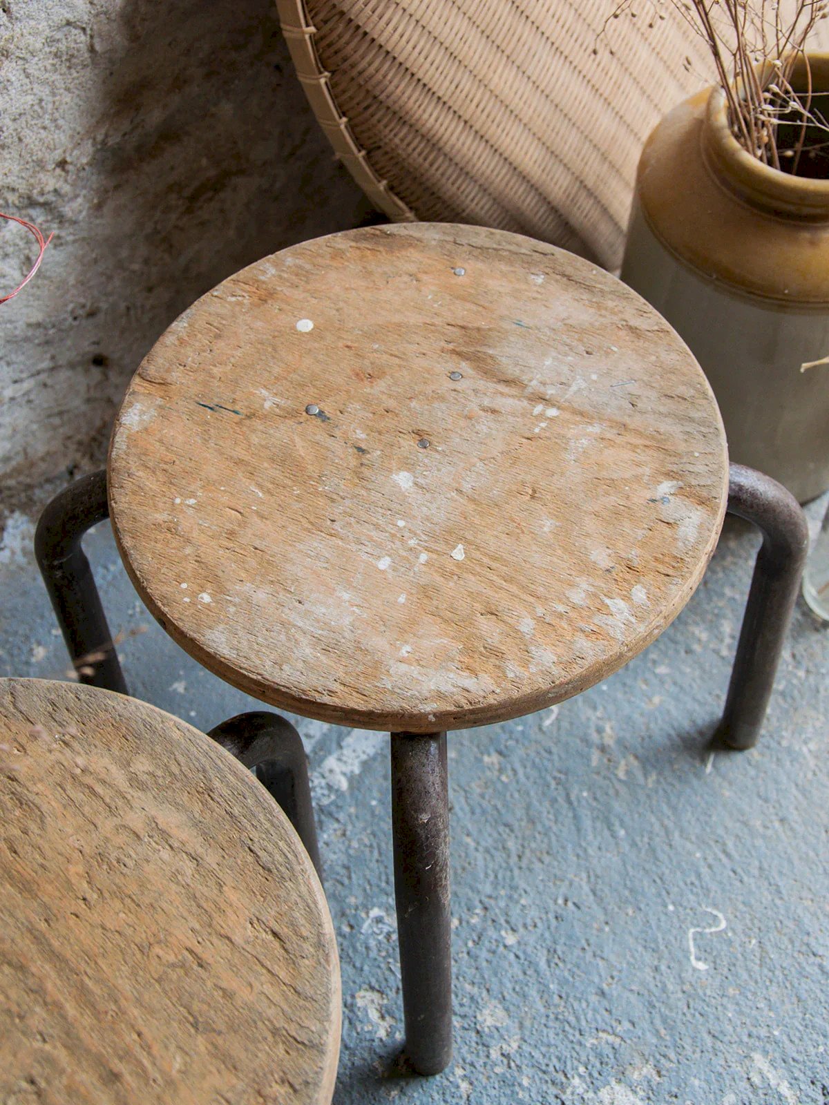 Add a vintage touch to your interior with our industrial stool made of metal and wood with a wide base. Formerly an upholsterer’s stool, this piece combines elegance and robustness. Its metal structure ensures optimal stability, while the wooden seat brings warmth and authenticity to your decor. Ideal for the kitchen, living room, or as an extra piece, this stool brilliantly combines comfort and style. Sold individually, 6 units are available. Height: 30 cm Diameter: 30 cm Condition: Used: Item has been used. Item shows some signs of superficial wear. Fully operational and functioning correctly. It may be a display model or an item returned to the store after a short period of use and may have some imperfections. Color: Multicolored Height: Country Width: Wood, Metal Length: Low stools Brand: Debongout Type: Curated product Material: Wood, Metal Style: Country Assembly required: No Assembly level: Fully assembled.