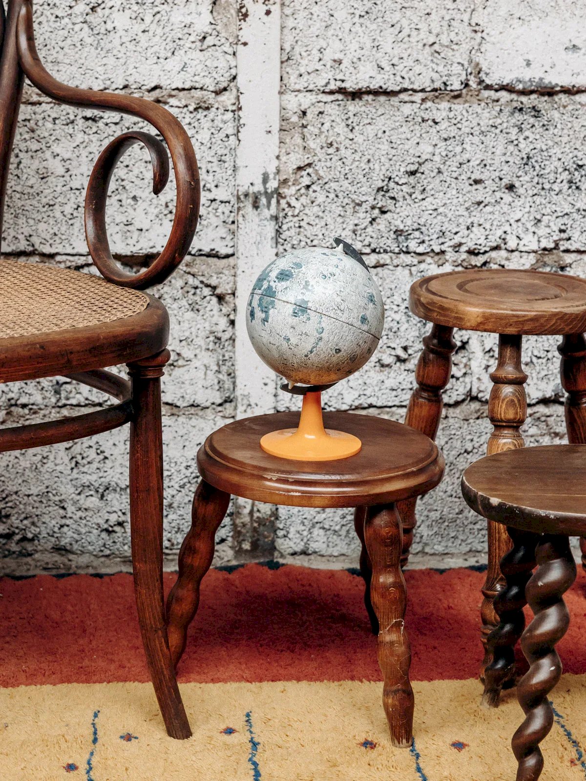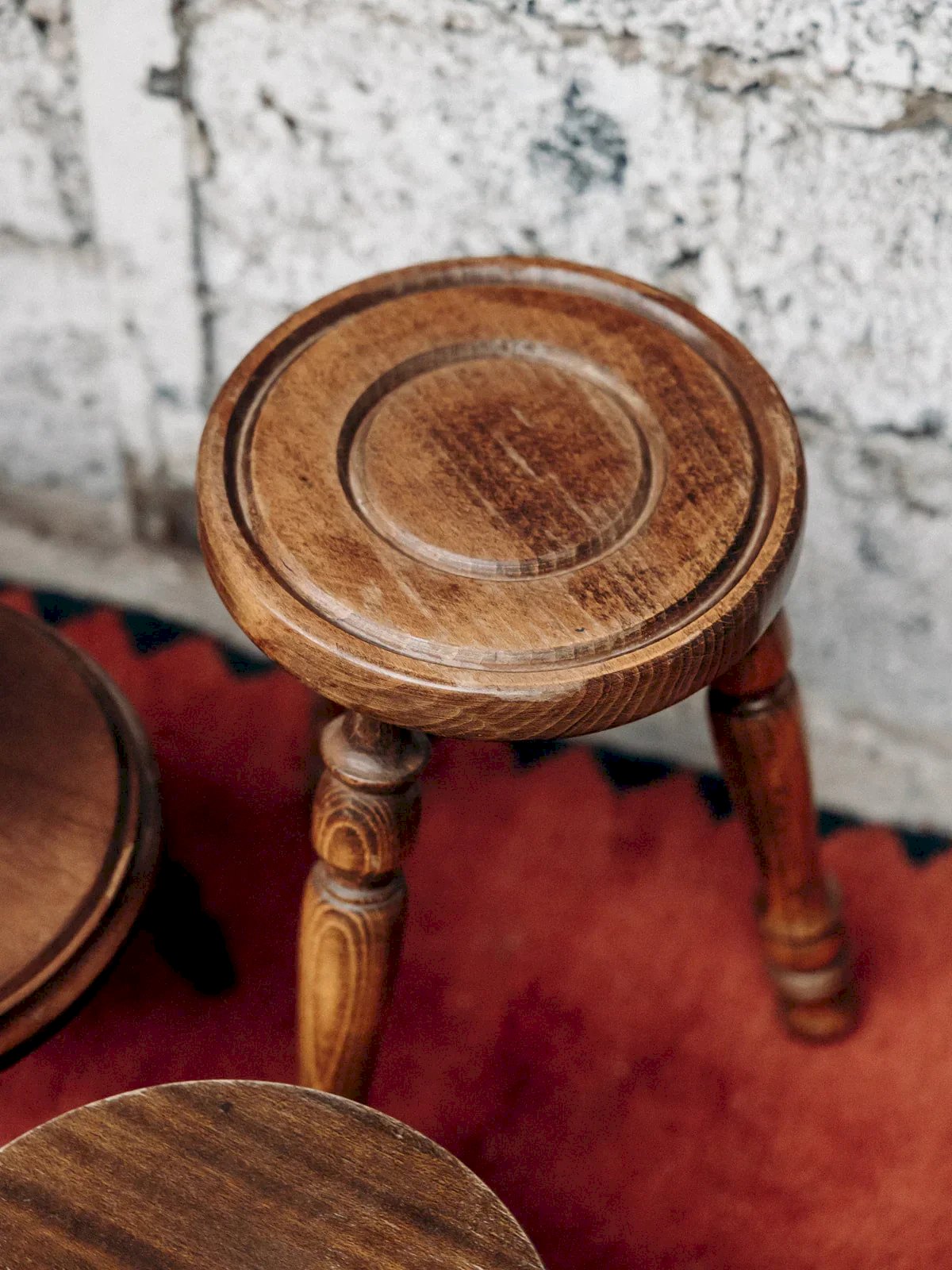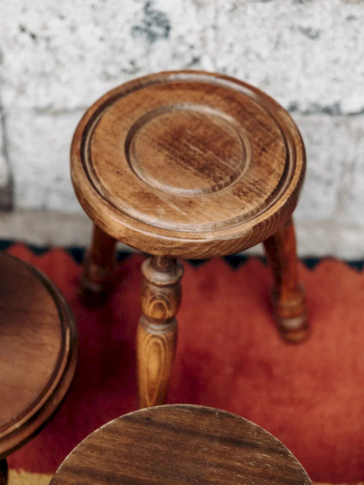 This wooden stool with a brutalist style stands out with its three sculpted legs, giving it a unique and sturdy appearance. The also sculpted top adds an artistic dimension and strong character to the whole piece. A piece of furniture that is both functional and decorative, perfect for bringing a bold and original touch to your interior. Height: 45 cm Diameter: 25 cm Condition: Used: Item that has been used. Item showing some superficial wear marks, ...Used: Item that has been used. Item showing some superficial wear marks, fully operational and working properly. It may be a demonstration model or an item returned to the store after a short period of use. any potential imperfections. Color: Multicolored Height: Country Width: Wood Length: Low stools Brand: Debongout Type: Vintage product Material: Wood Style: Country Assembly required: No Assembly level: Fully assembled