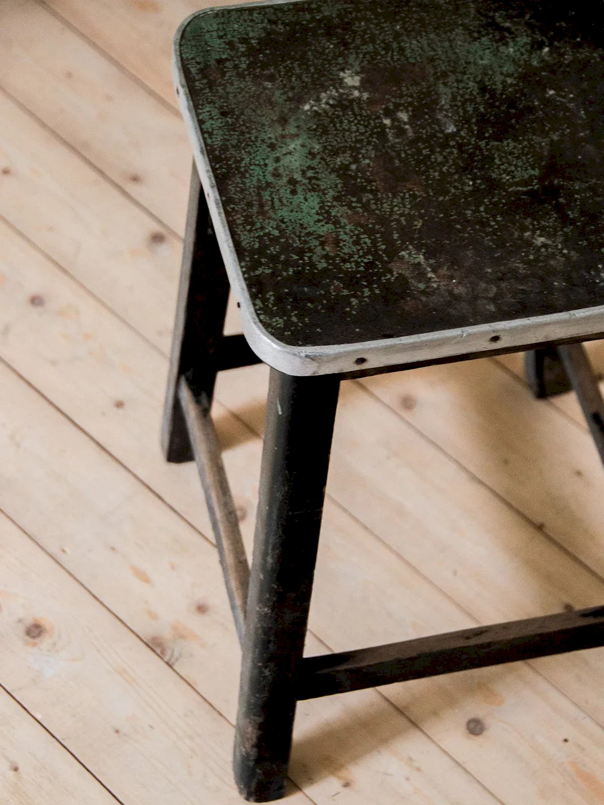 Discover our stool combining wood and metal, with four sturdy black legs. Its clean and contemporary design easily adapts to all interior styles. Ideal for practical and elegant seating. It shows some signs of wear on the legs and seat, but that adds to its charm. Width: 31 cm Height: 46 cm Depth: 26 cm Condition: Used: Item has been used. Item shows some superficial signs of wear, fully operational and functioning properly. It may be a demonstration model or an item returned to the store after a short period of use, with possible imperfections. Color: Multicolored Height: Wood, Metal Width: Low stools Brand: Debongout Type: Vintage product Material: Wood, Metal Style: Country