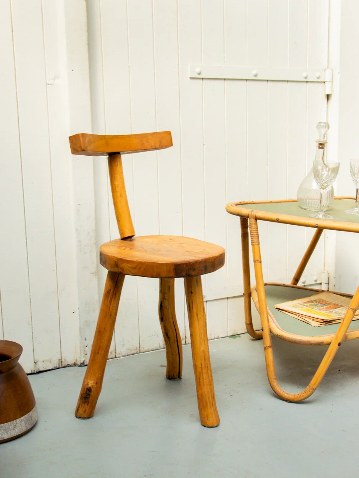 Discover this wooden stool with a simple and elegant design. Its careful assembly ensures great robustness. Equipped with a backrest, it offers additional comfort for extended use. Ideal for complementing various types of interiors, it easily adapts to different atmospheres. A functional and stylish piece of furniture that will satisfy you. Length: 33 cm Height: 72 cm Depth: 38 cm Condition: Used: Item has been used. Item shows some superficial wear marks,... Used: Item has been used. Item shows some superficial wear marks, fully operational and functioning correctly. It may be a demonstration model or an item returned to the store after a short period of use. Potential imperfections. Color: Multicolor Height: Rustic Width: Wood Length: Low stools Brand: Debongout Type: Vintage product Material: Wood Style: Rustic Assembly required: No Assembly level: Fully assembled.